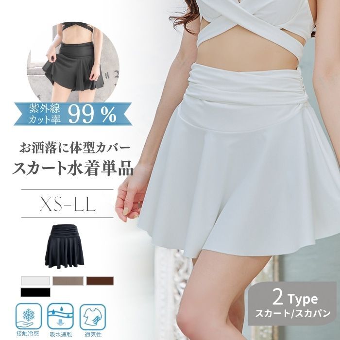 【訳ありアウトレット品】【人気NO.18】選べる水着スカート【ロング丈orスカパン】単品★ブラック/ホワイト/ブラウン/カーキ