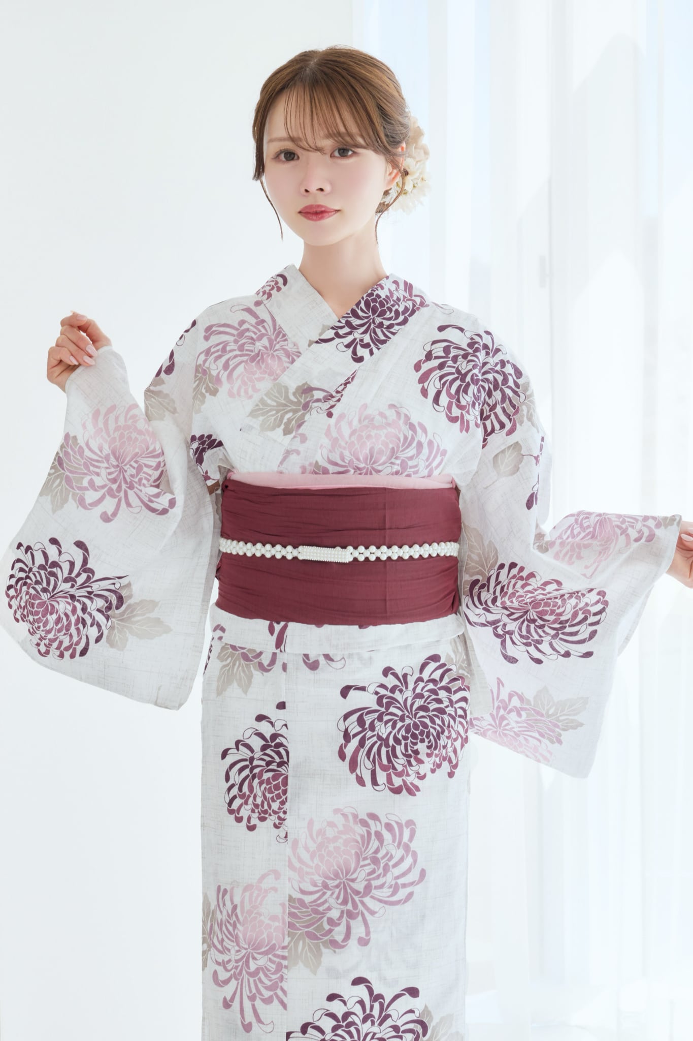 浴衣4点setえんじ色の菊散らし【帯えんじ】 Y5-18