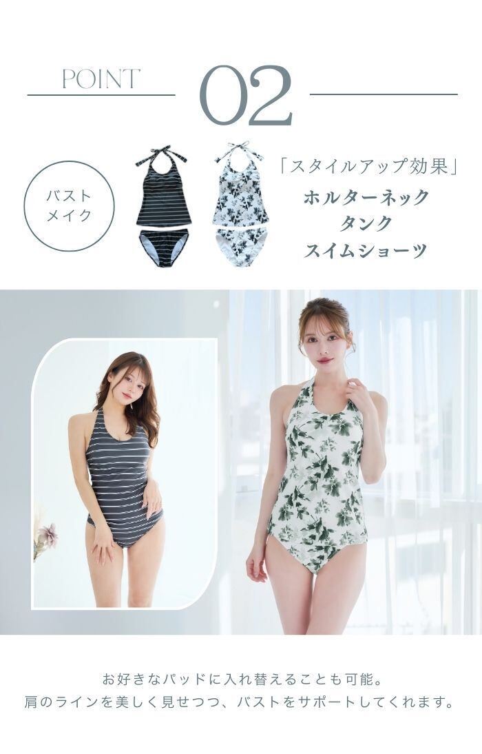 着回ししやすく、様々なシーンで大活躍!体型カバー水着。