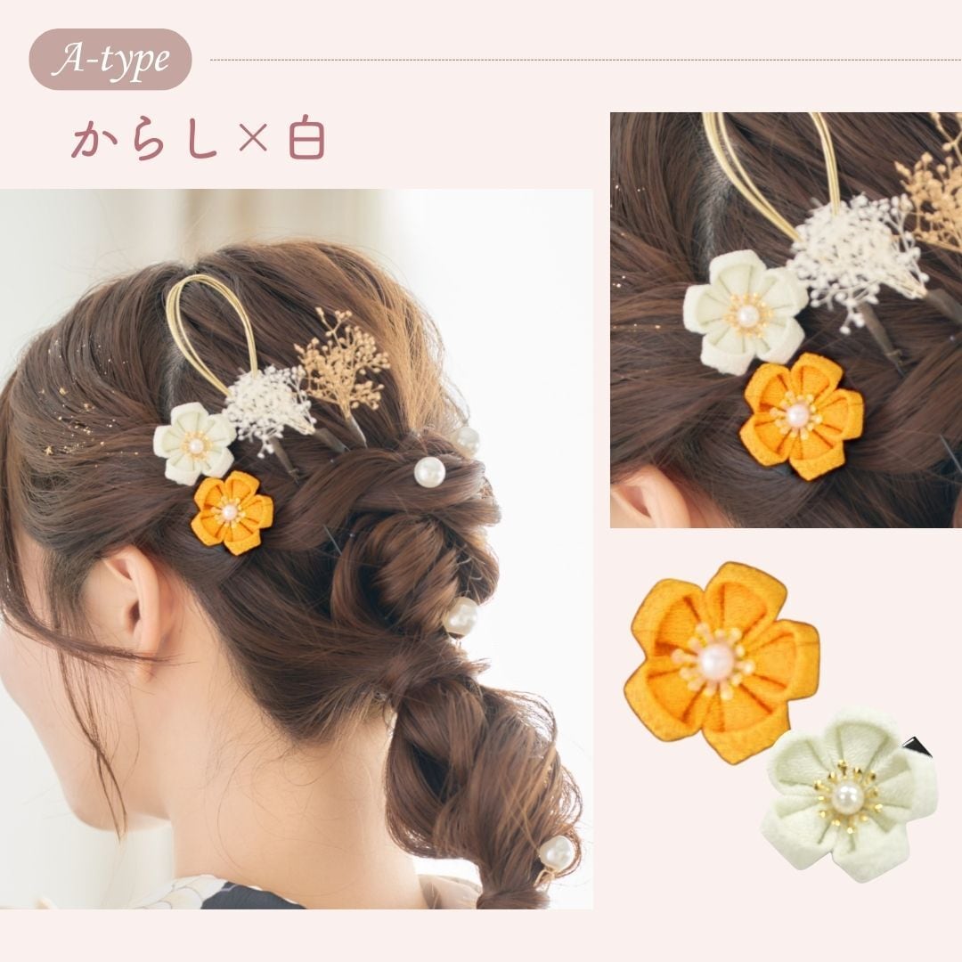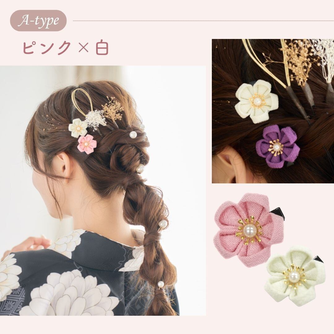【1】ちりめん細工お花2つ(Bタイプのみ大1個)