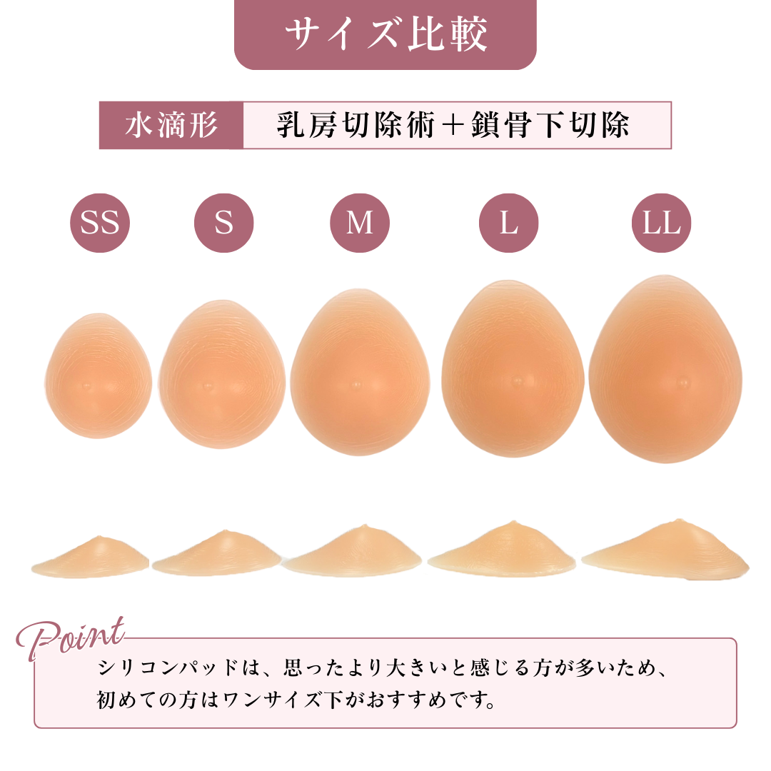 シリコンパッドは、思ったより大きいと感じる方が多いため、初めての方はワンサイズ下がおすすめです。
