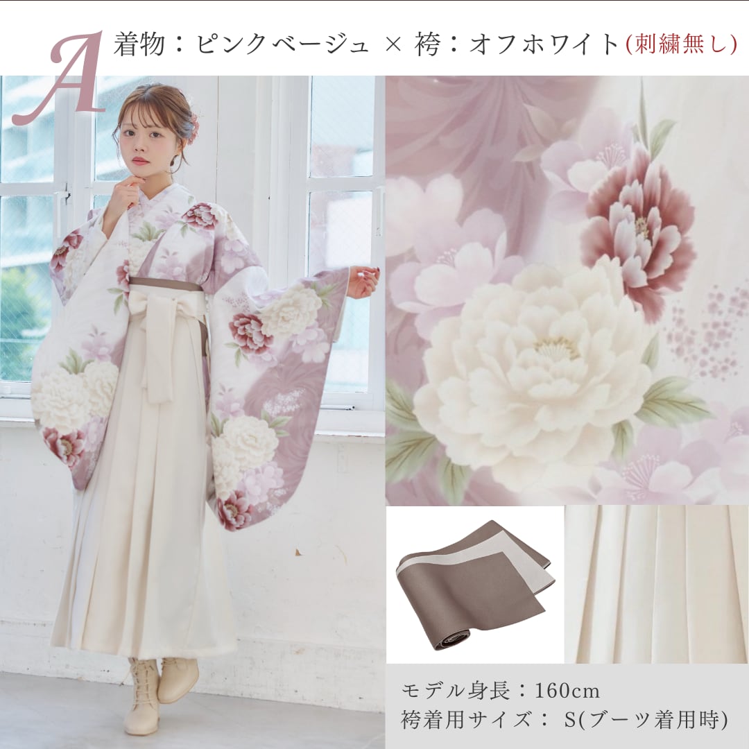 【袴4点set】ふんわり浮世牡丹(ピンクベージュ)93WWH/GR/MC