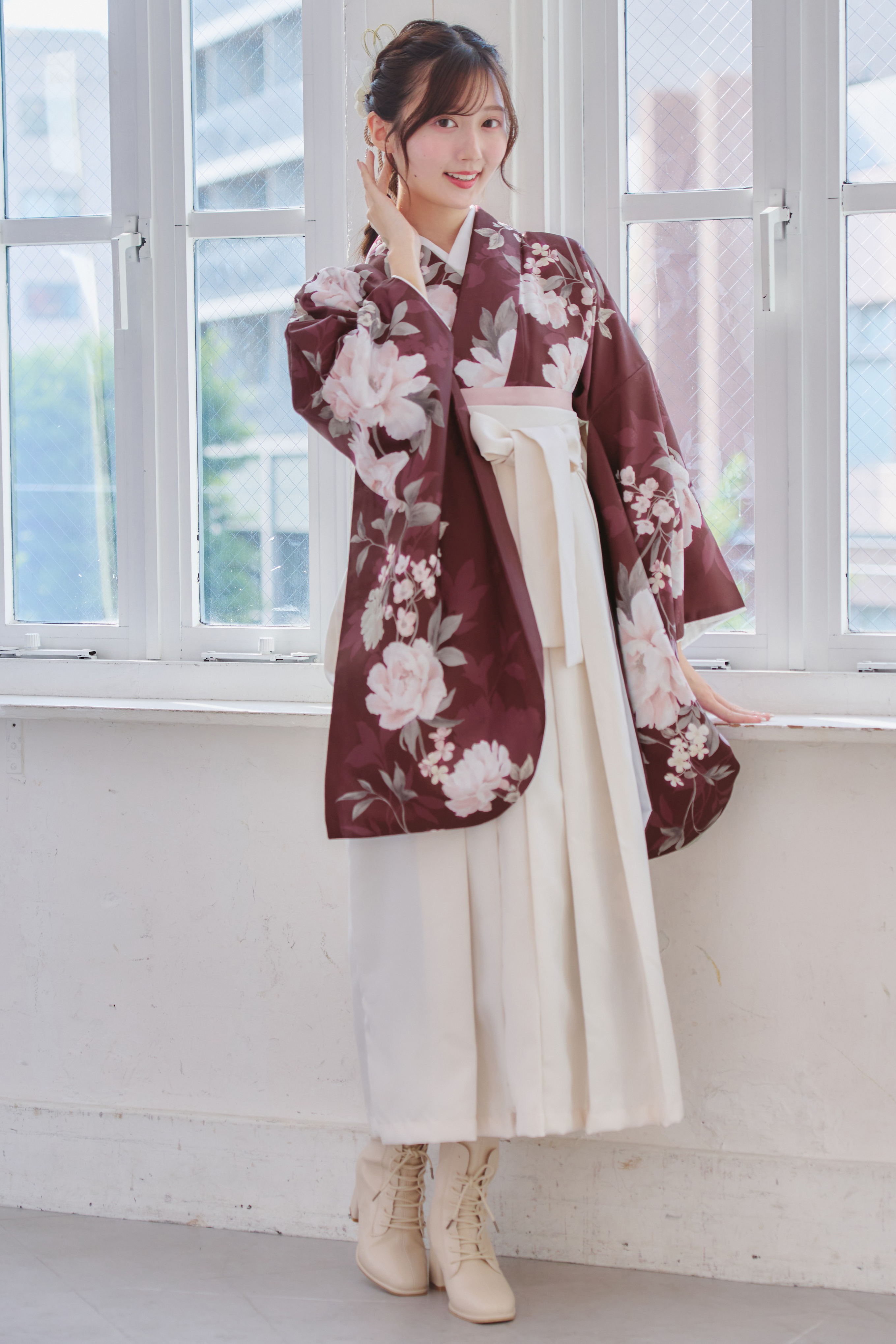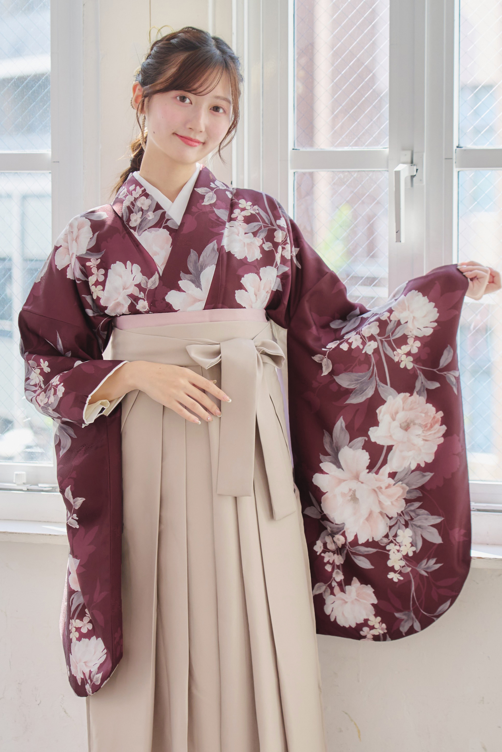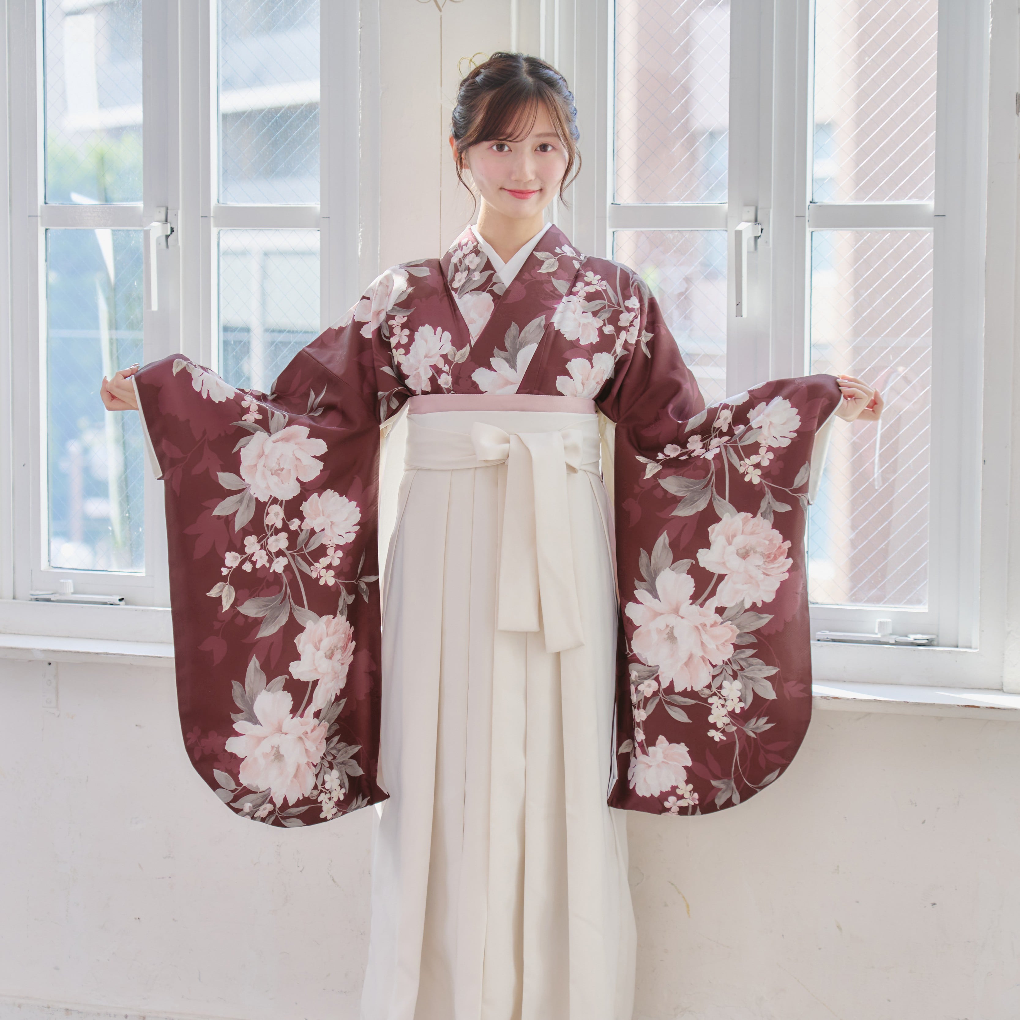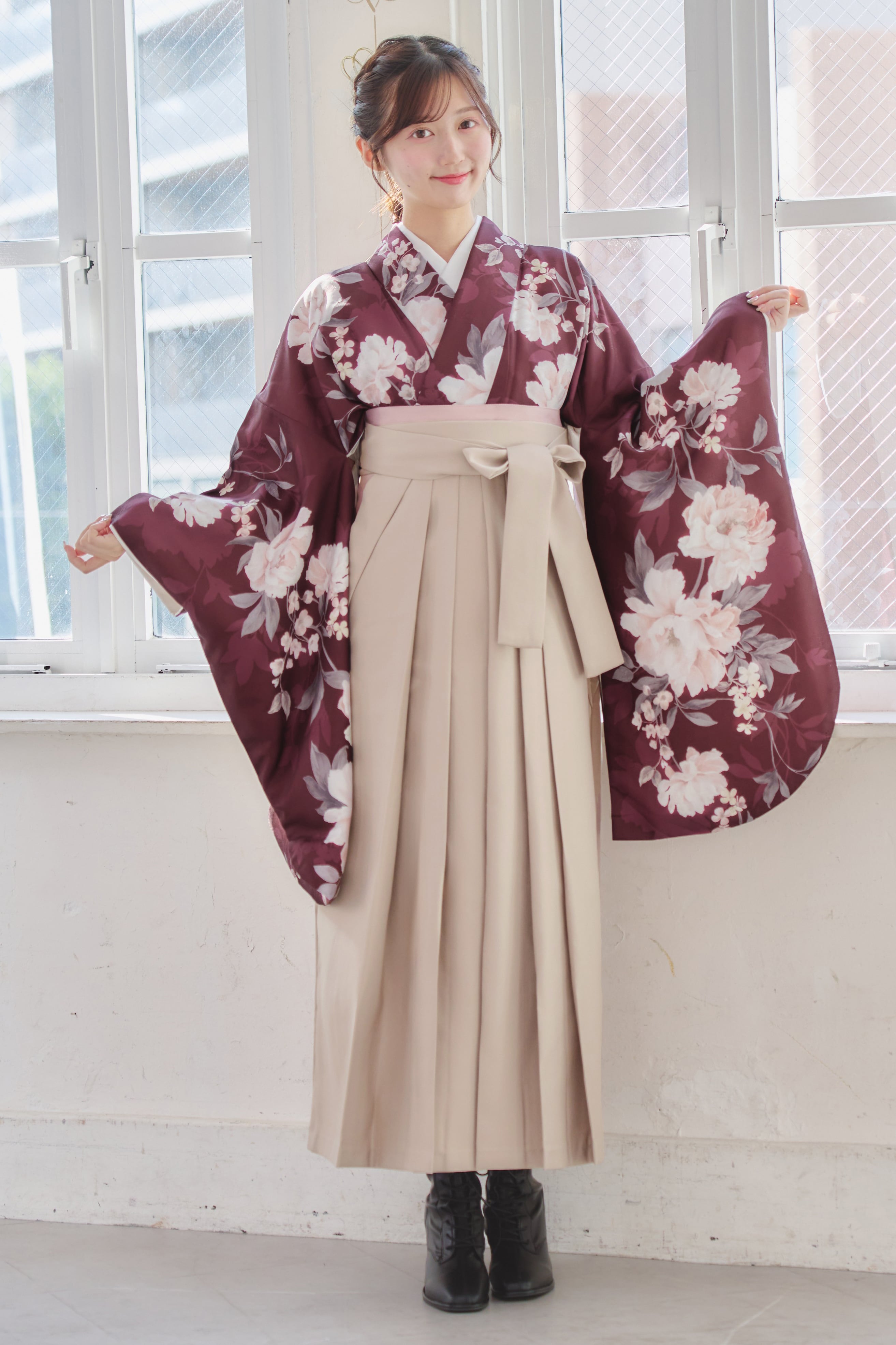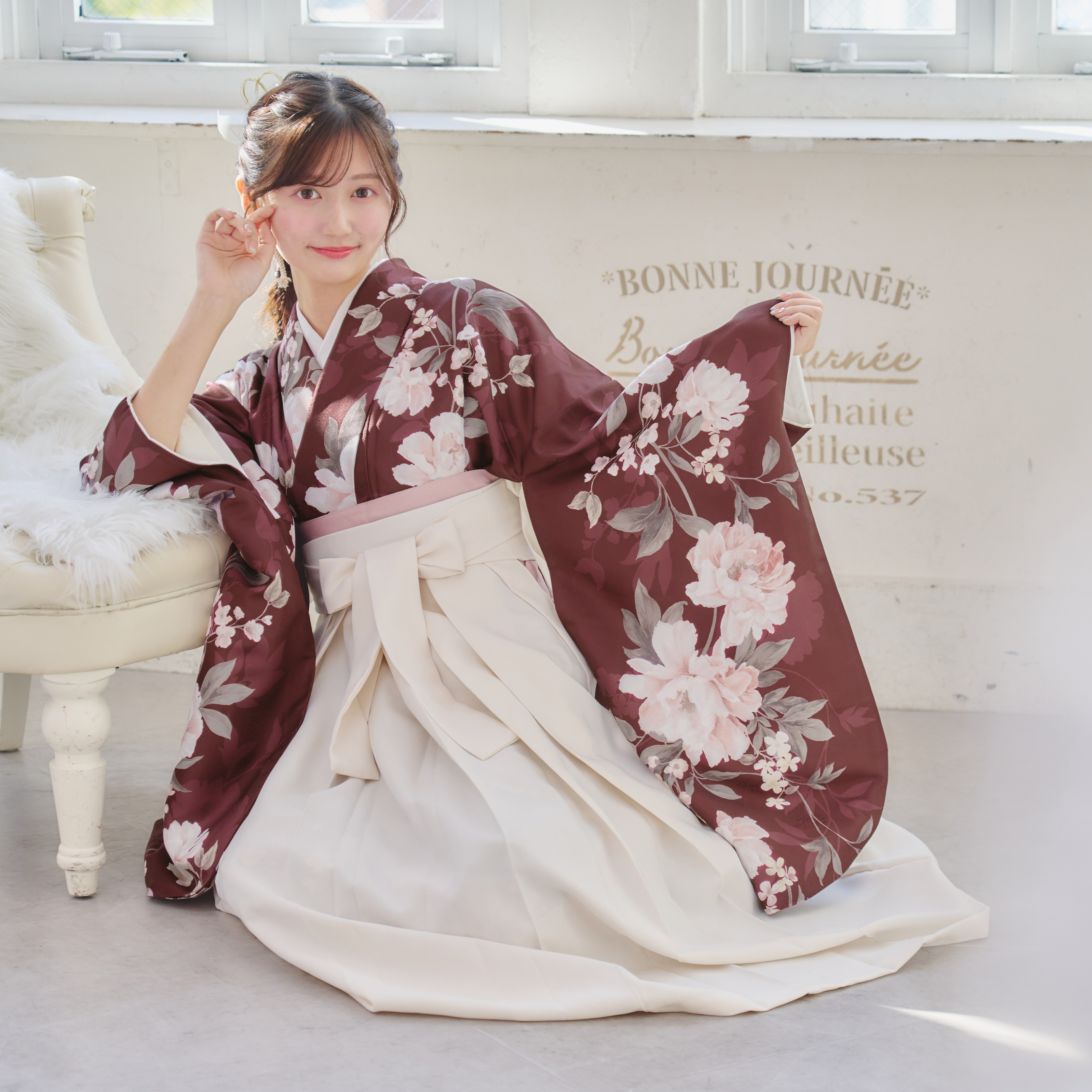【袴4点set】麗し芍薬の花重ね(エンジ)98WWH/LBJ
