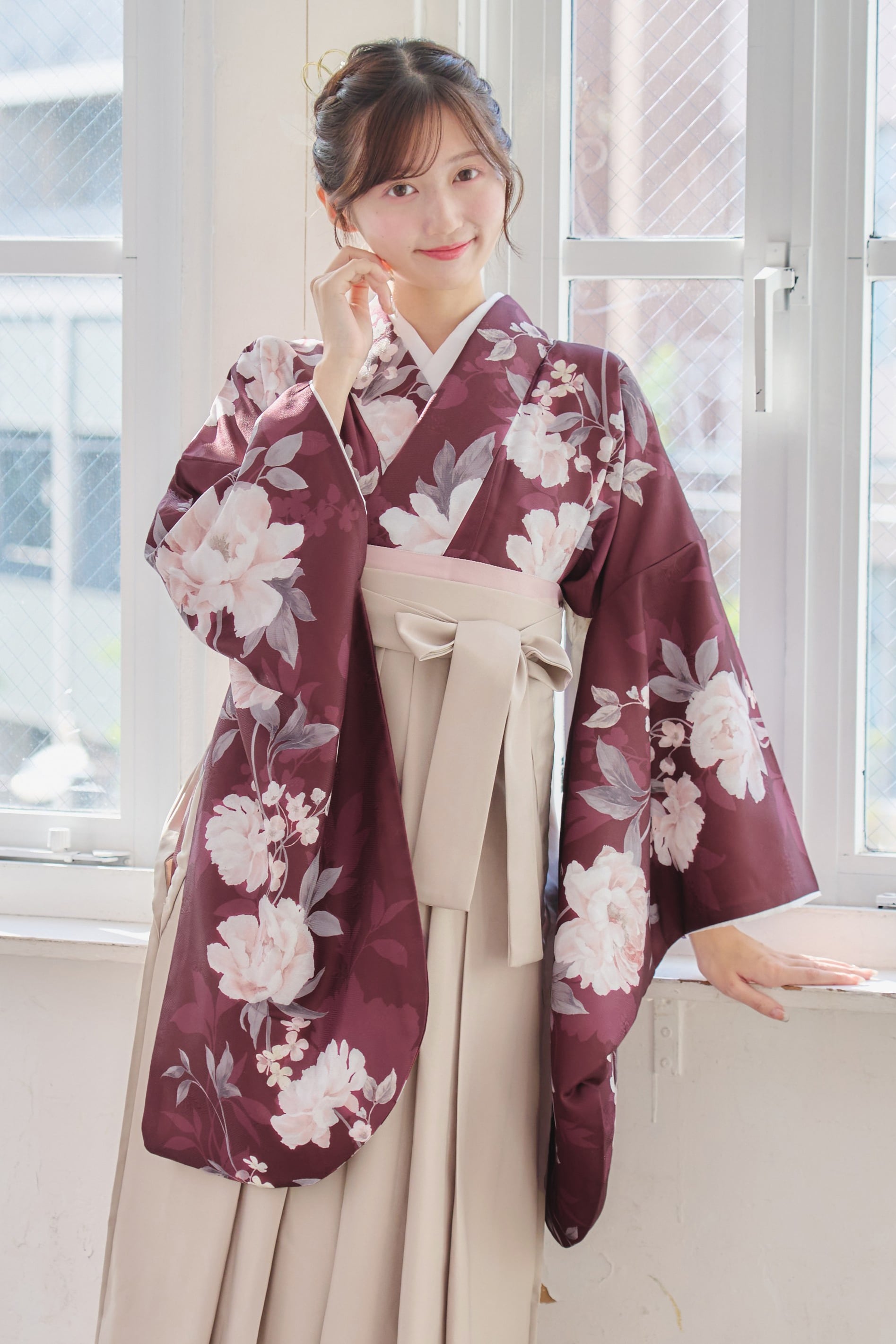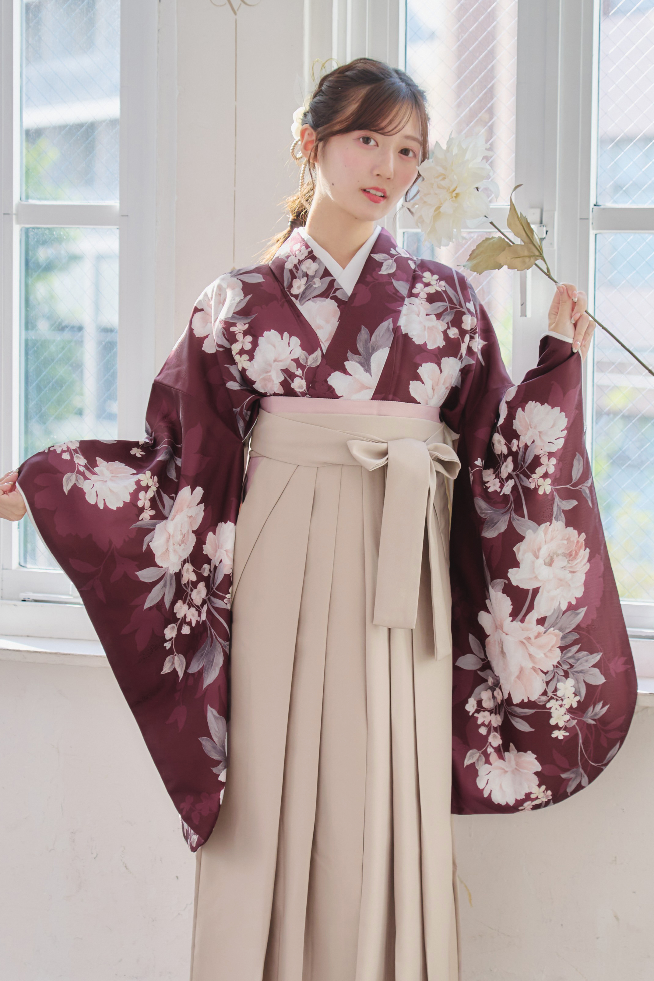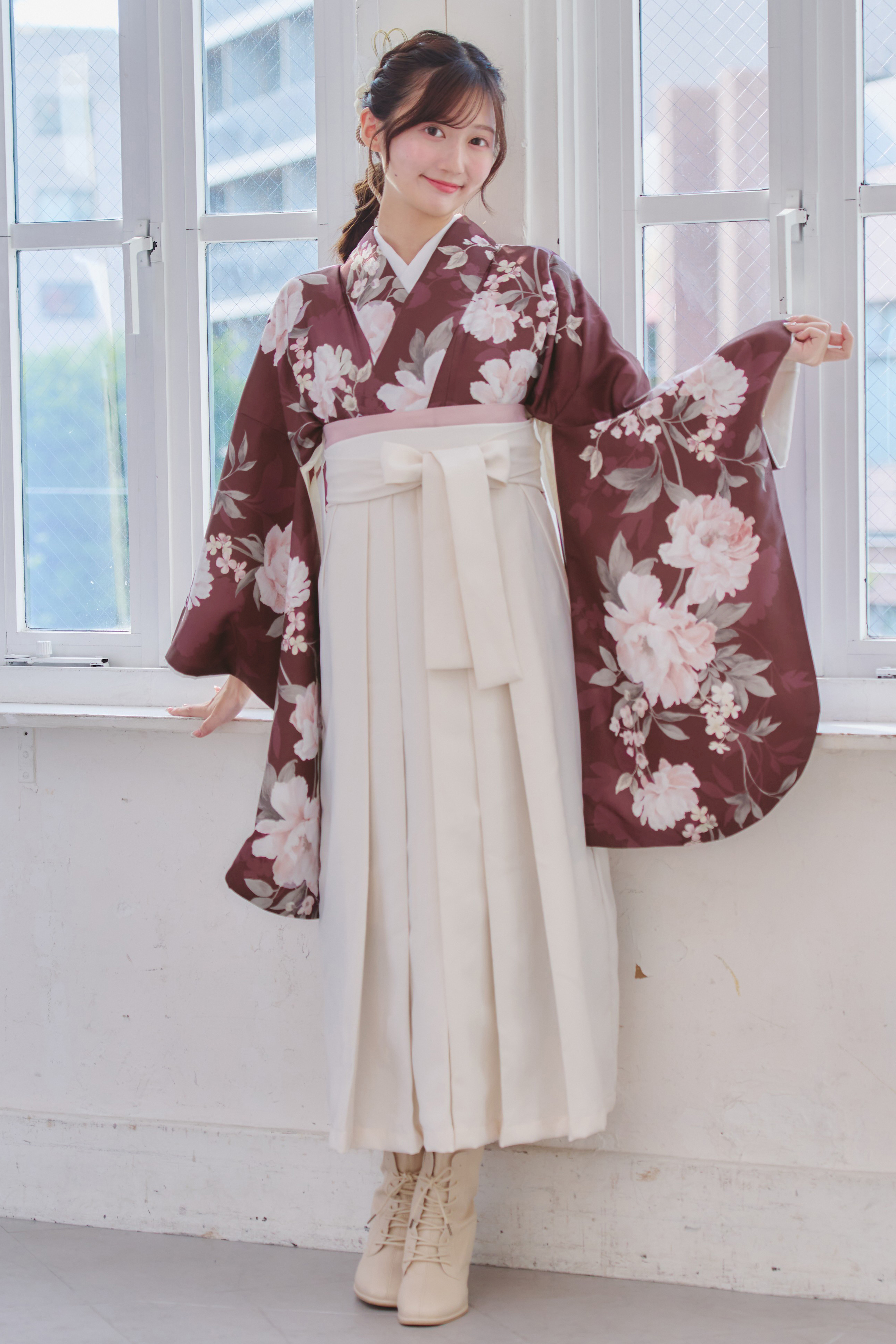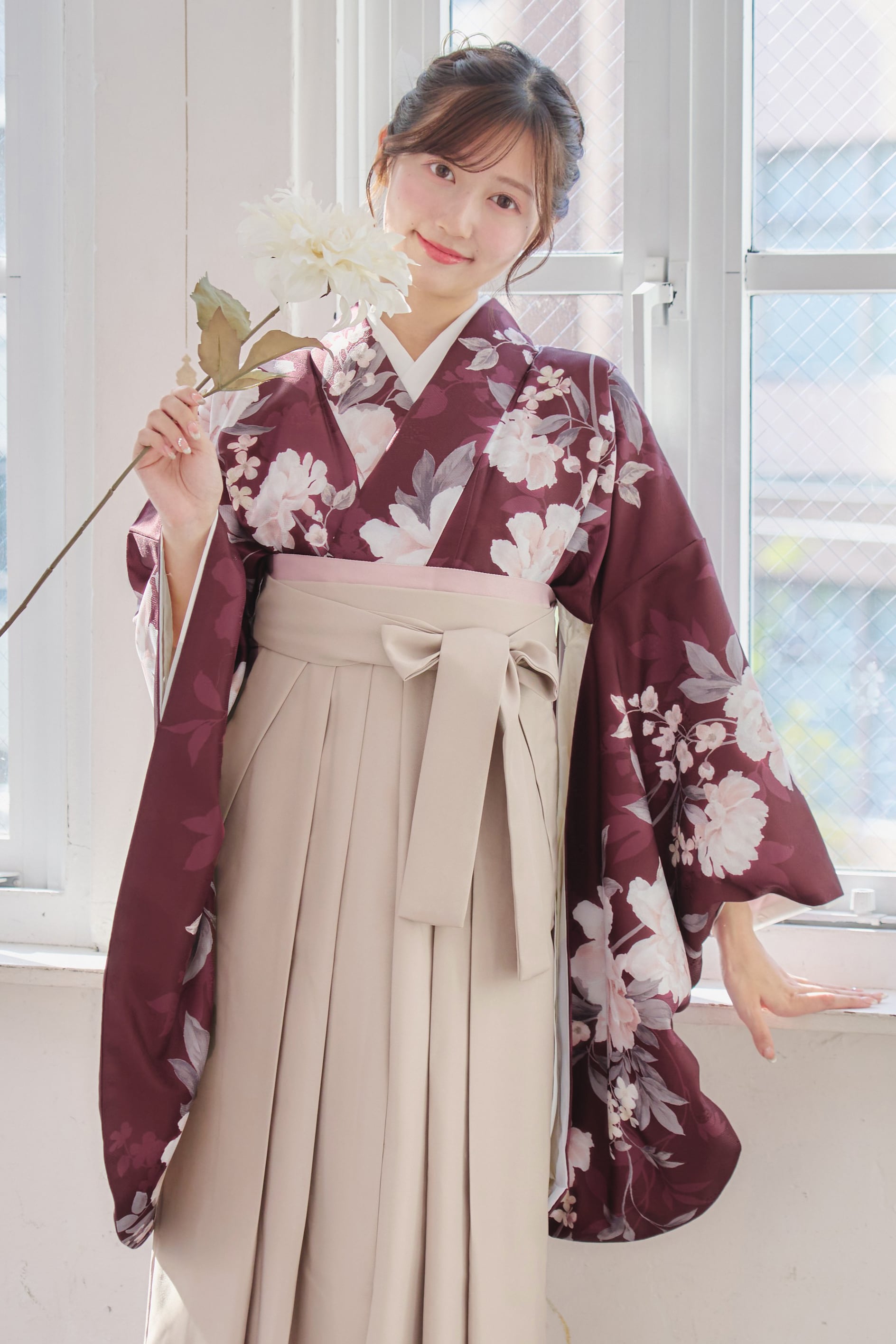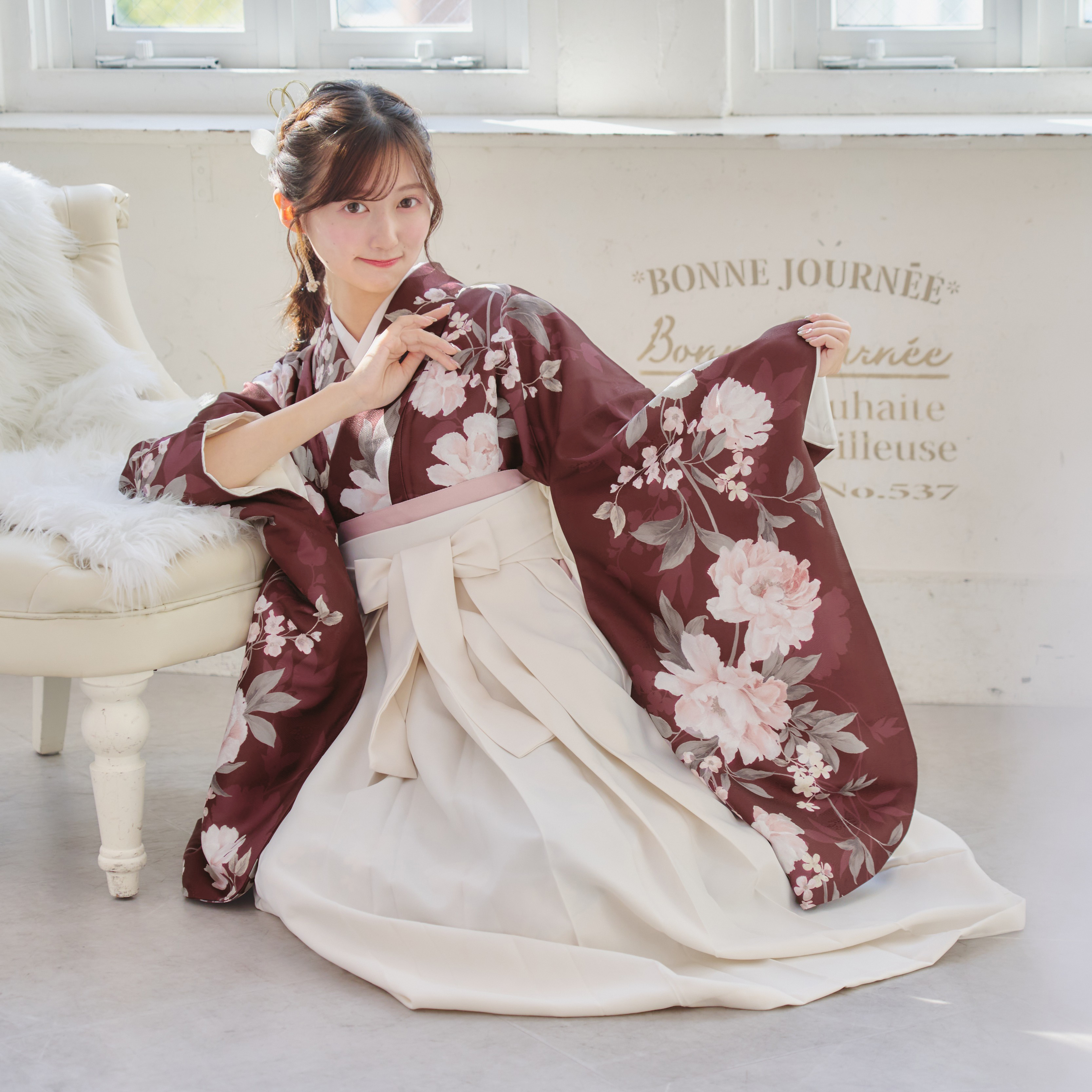 【袴4点set】麗し芍薬の花重ね(エンジ)98WWH/LBJ
