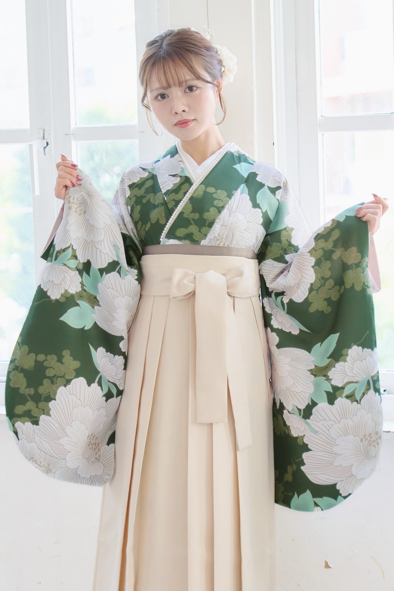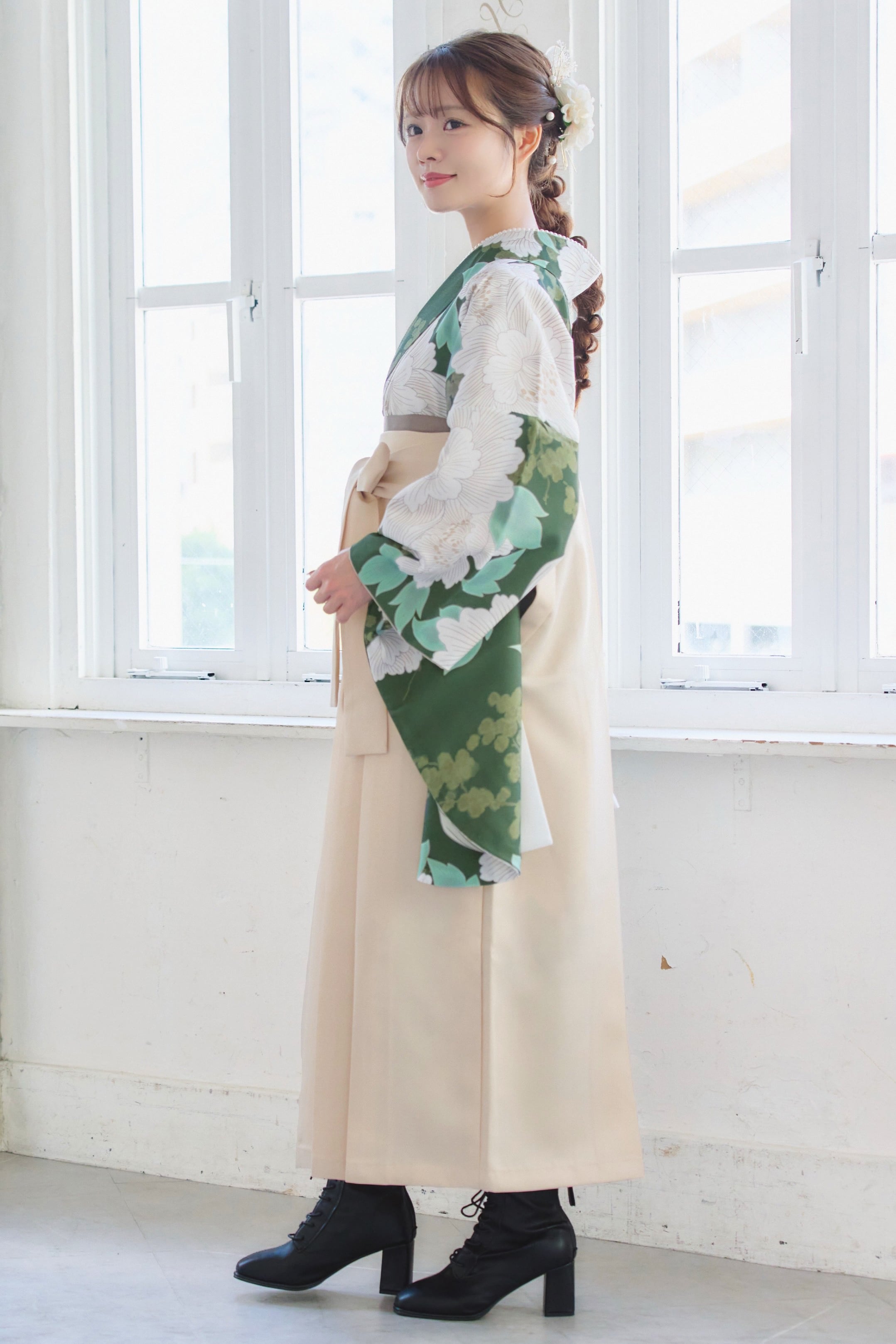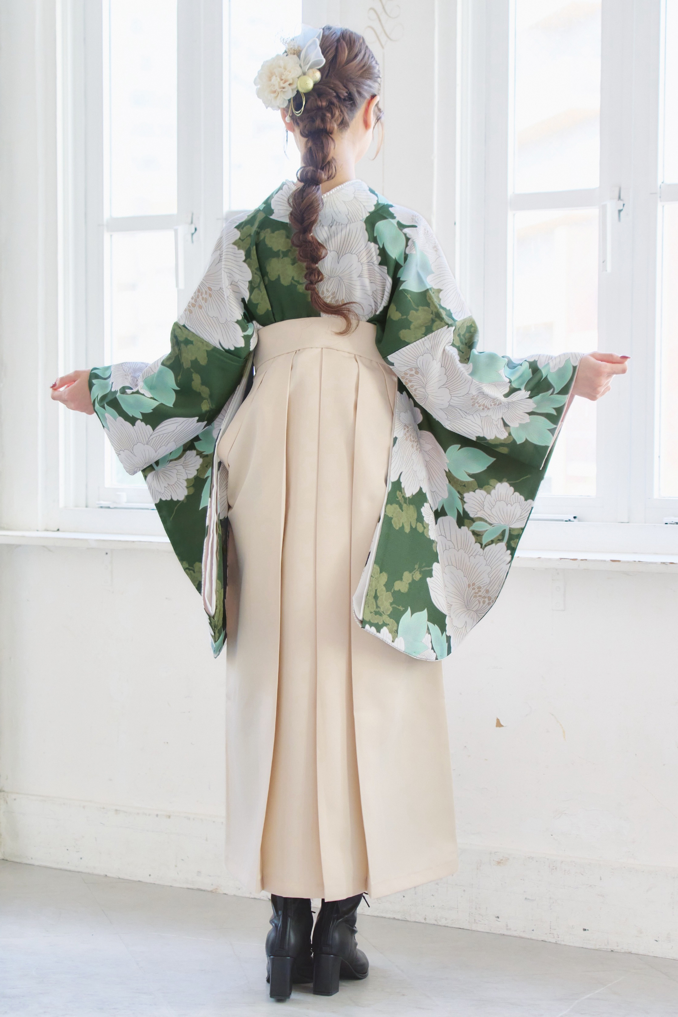 【袴4点set】江戸の大輪白花あそび(緑)99IV