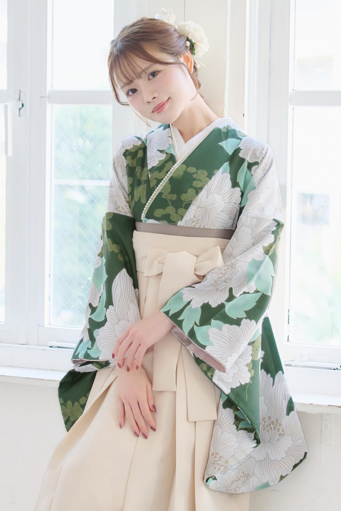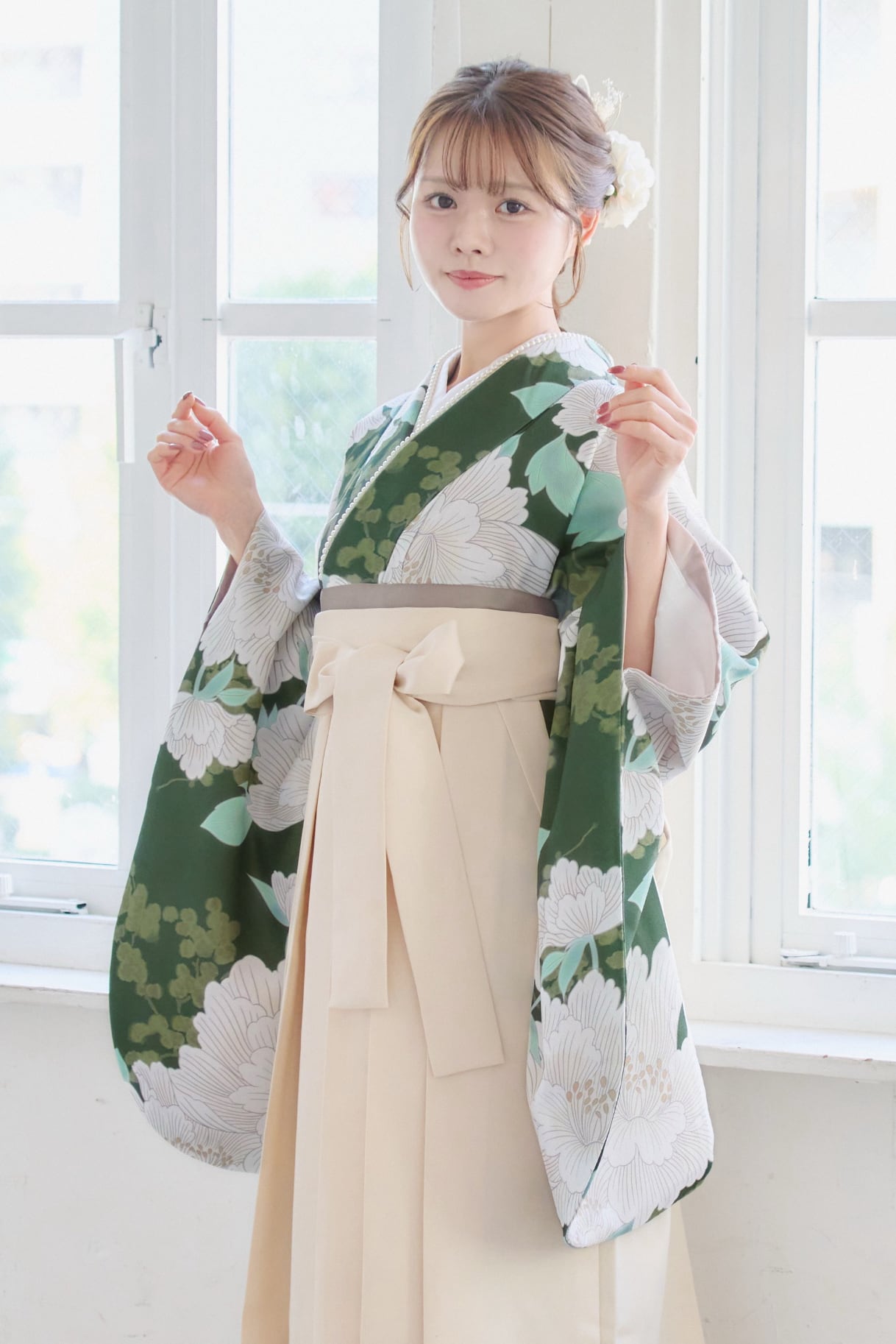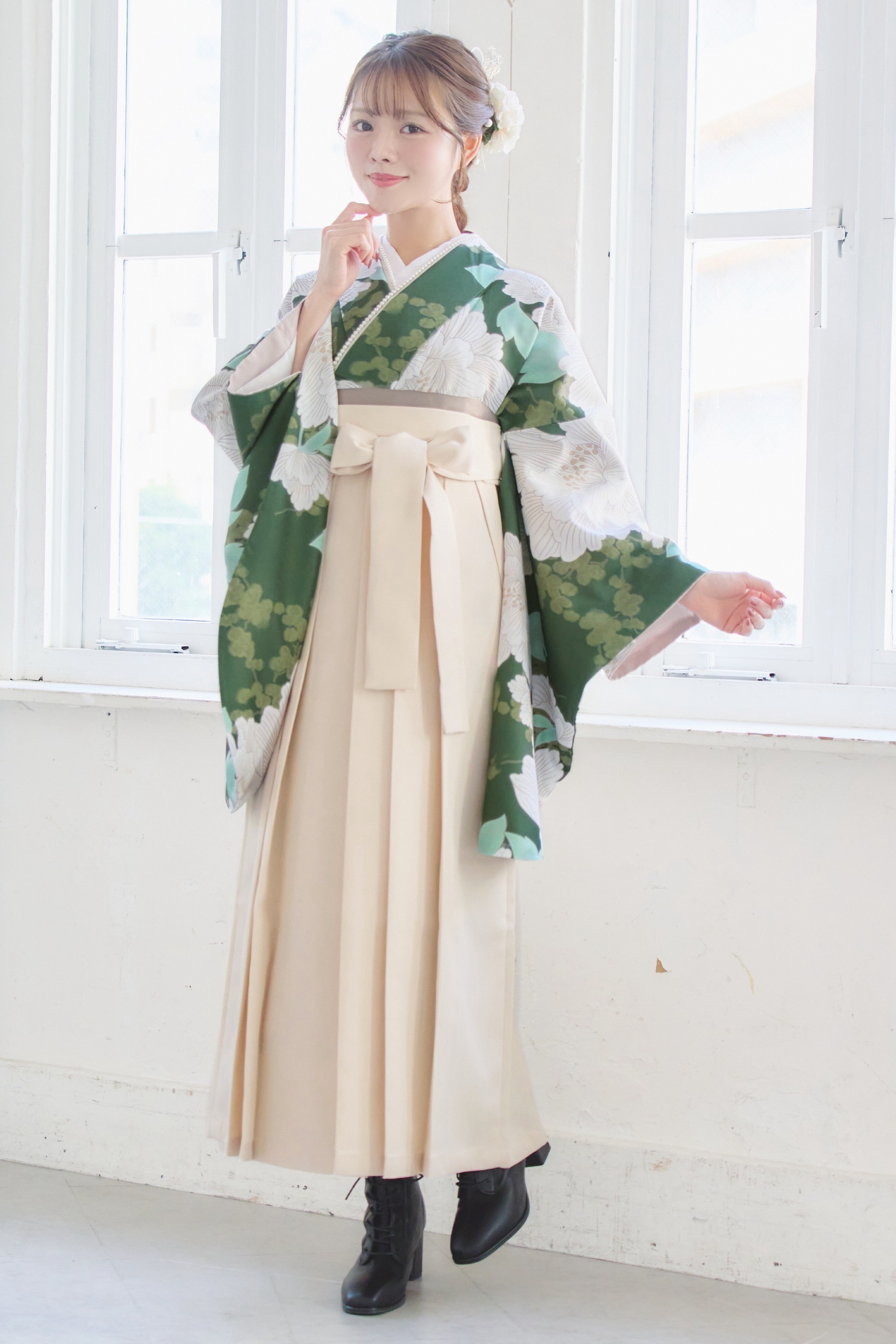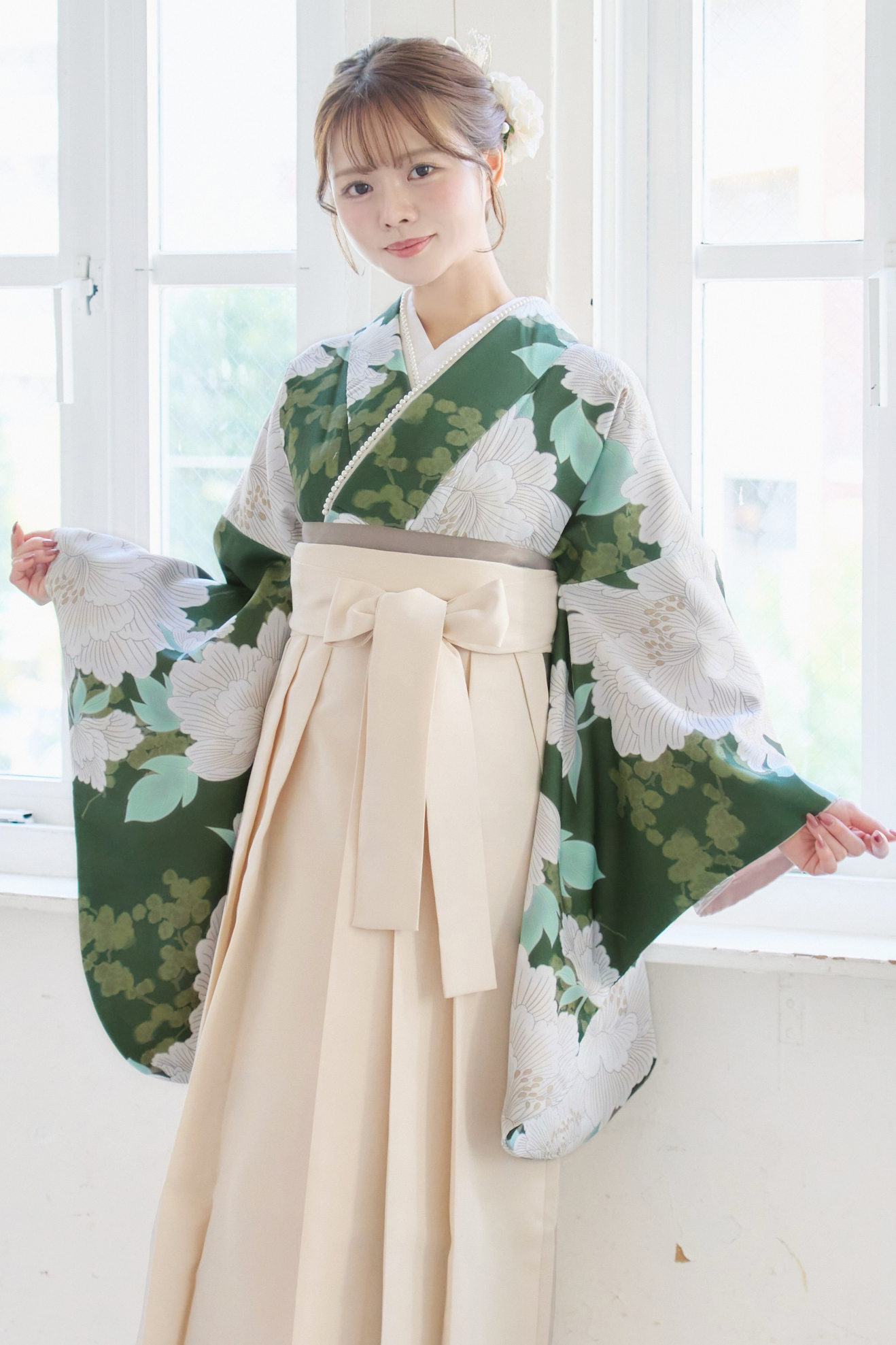 【袴4点set】江戸の大輪白花あそび(緑)99IV