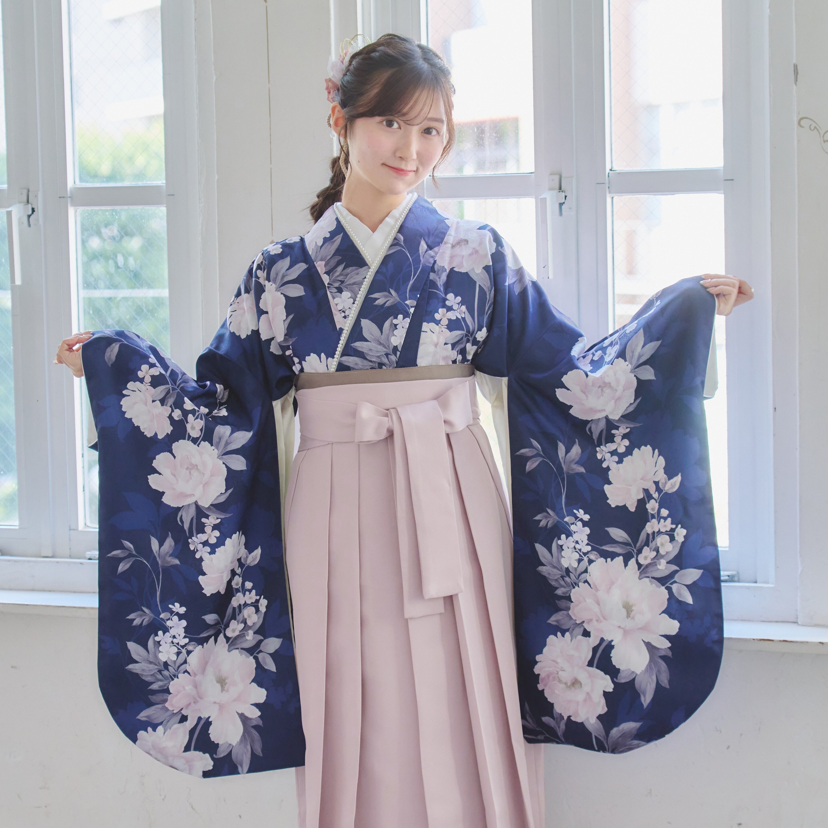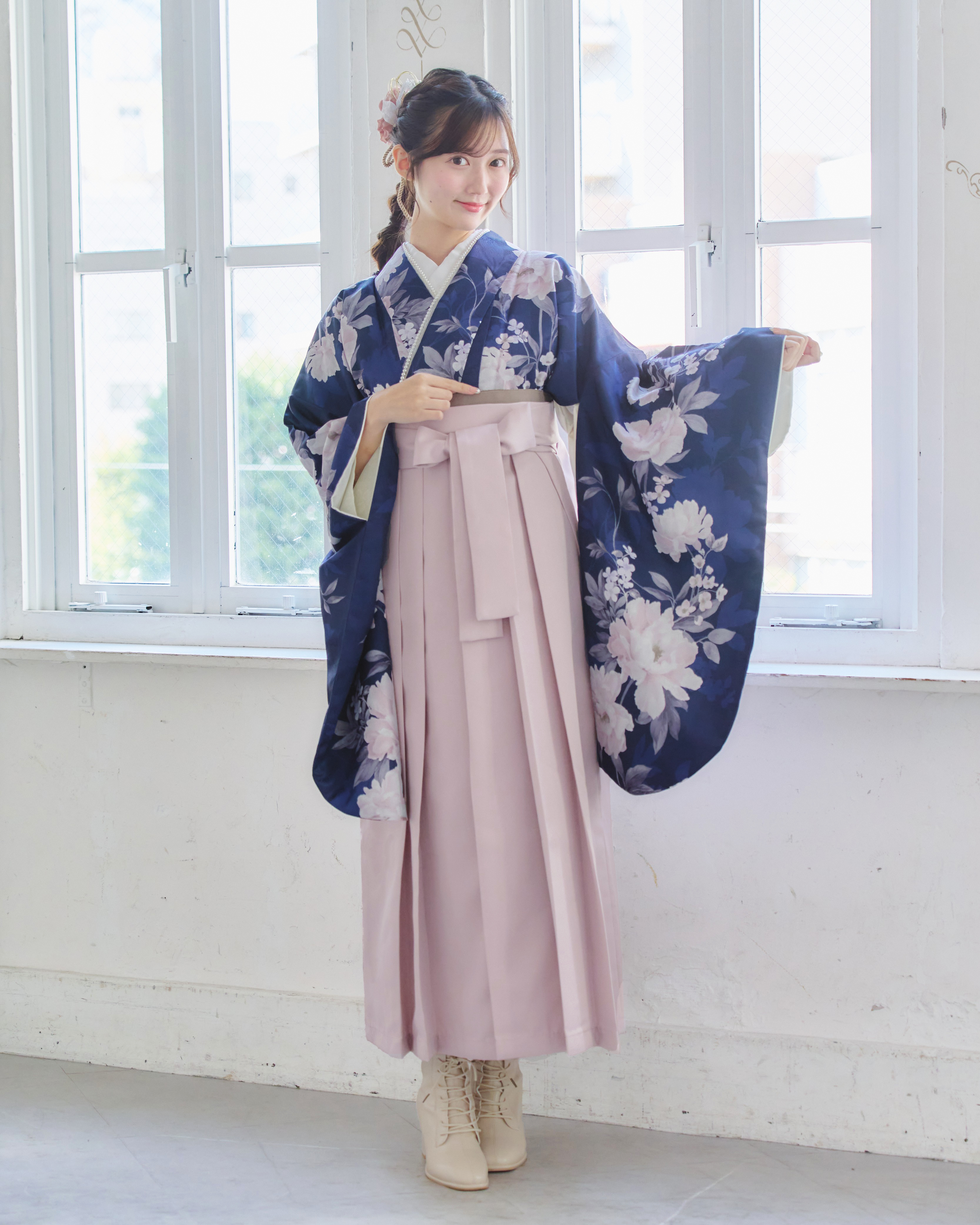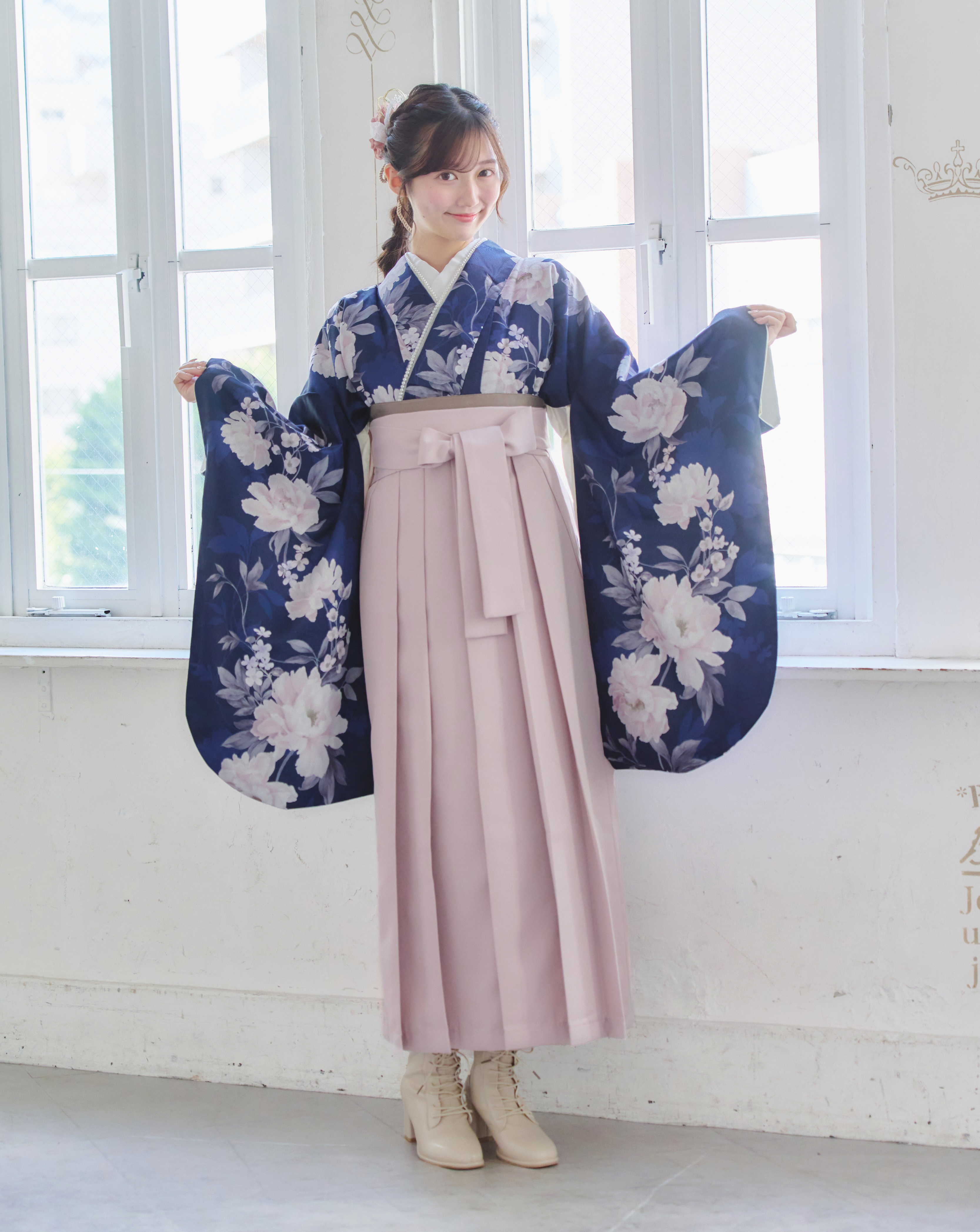 【袴4点set】麗し芍薬の花重ね(ネイビー)A3LPK