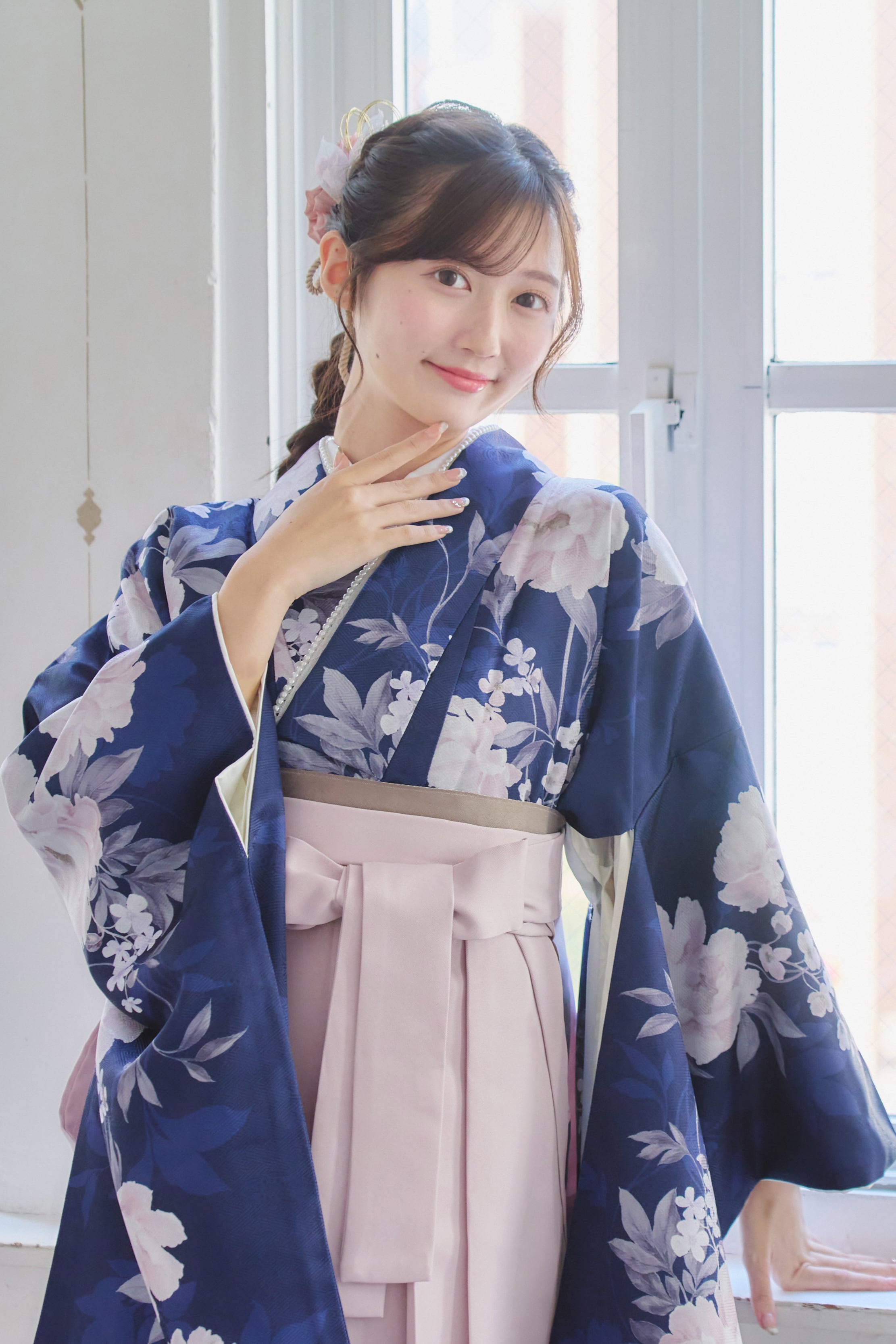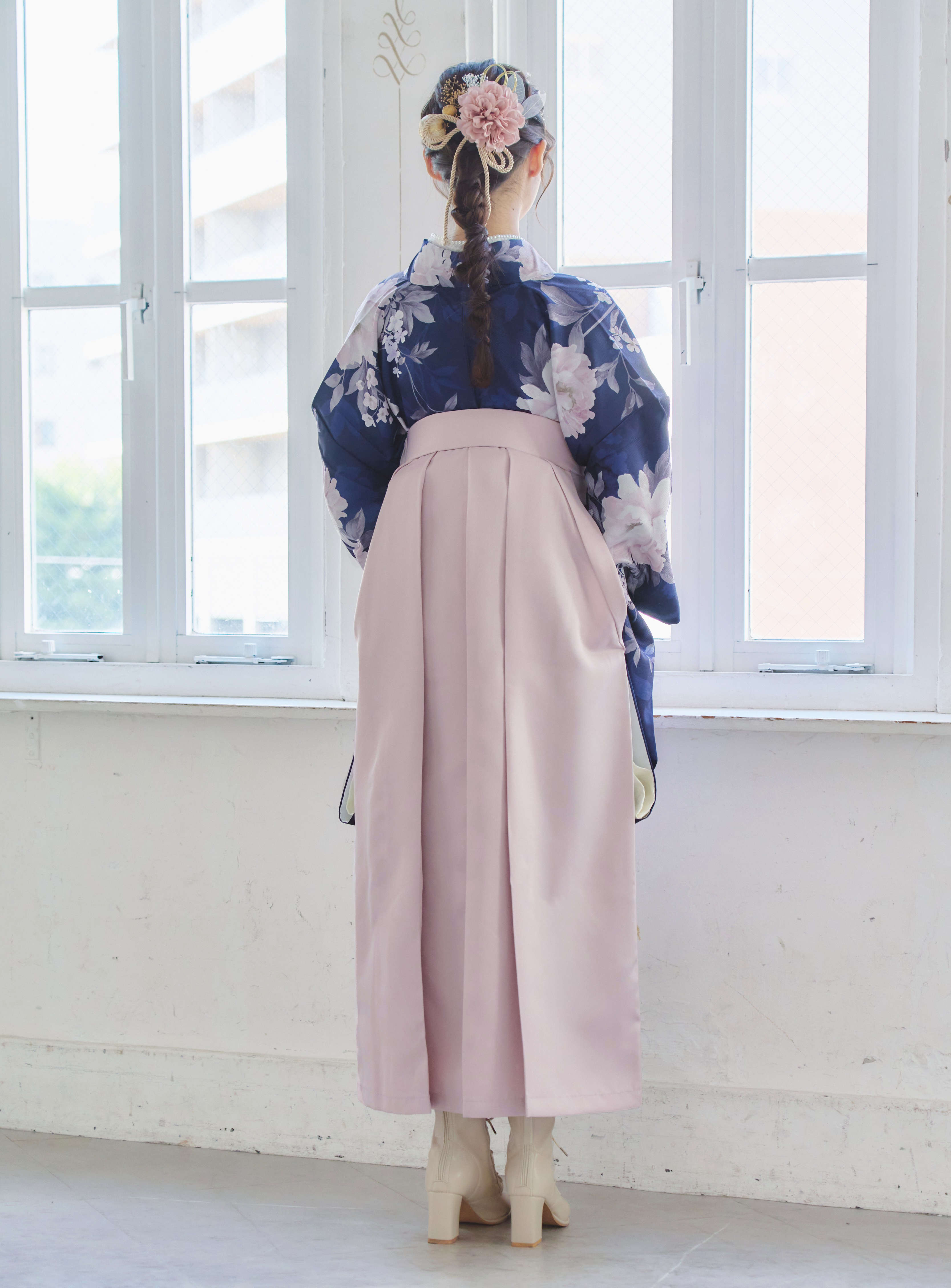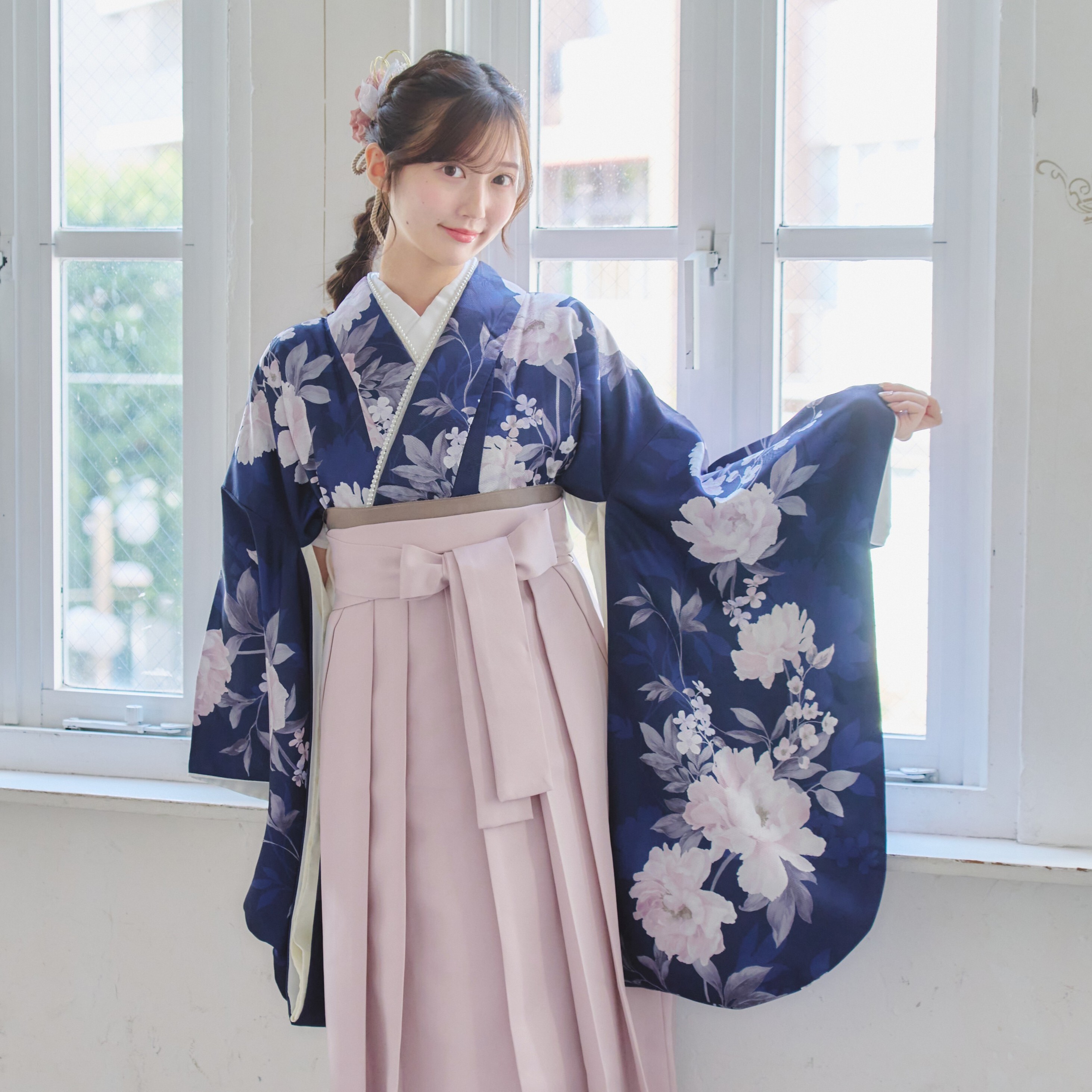 【袴4点set】麗し芍薬の花重ね(ネイビー)A3LPK