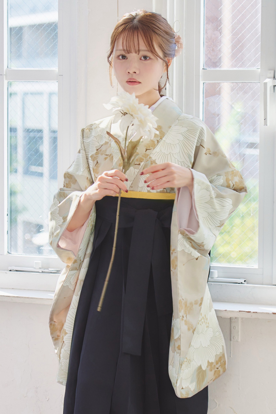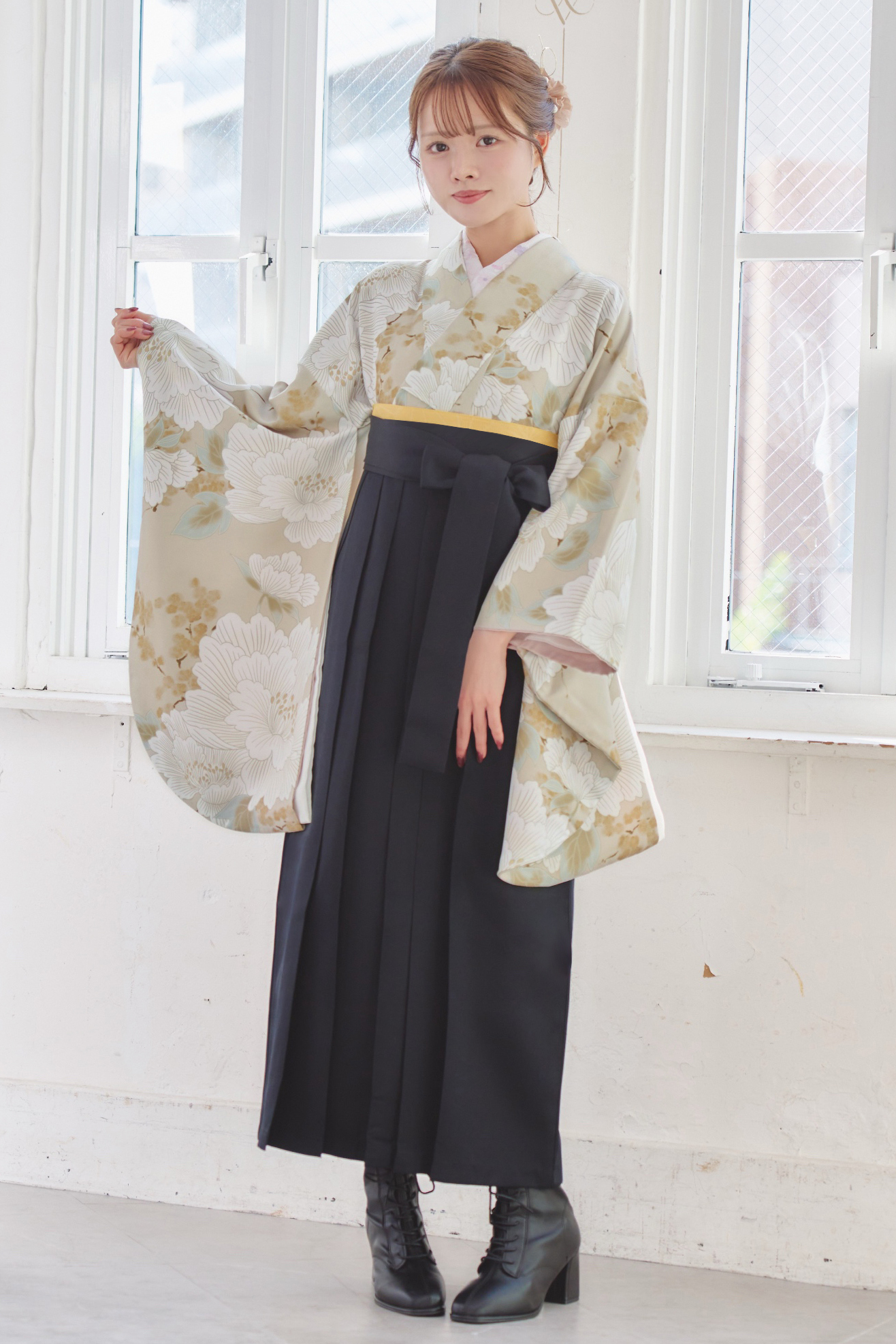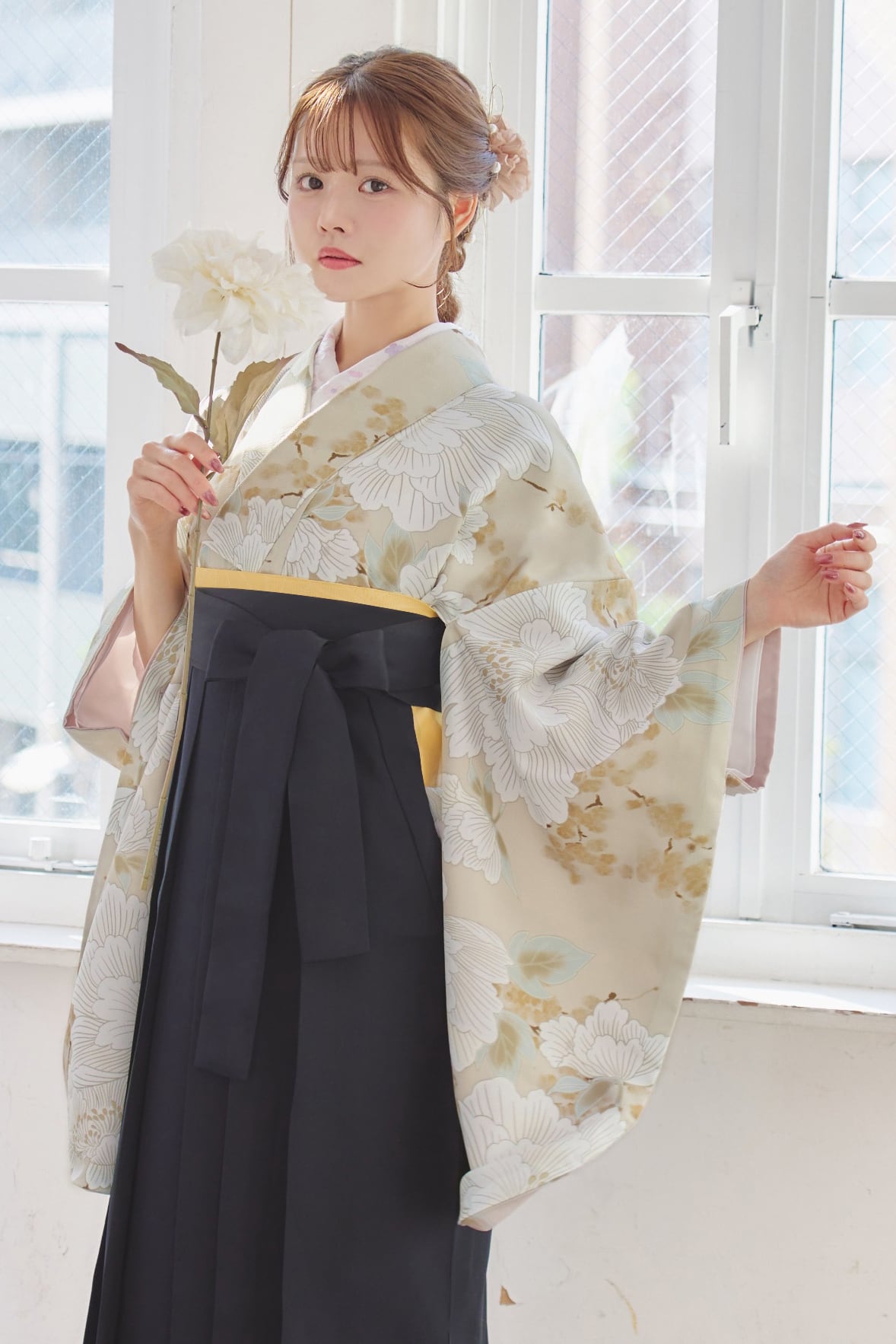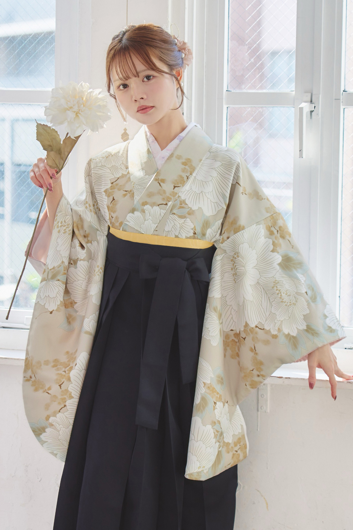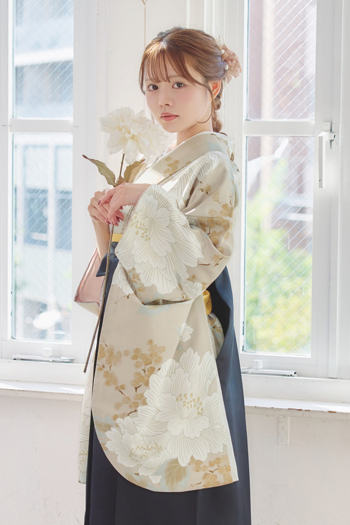 【袴4点set】江戸の大輪白花あそび(ベージュ)A4BK