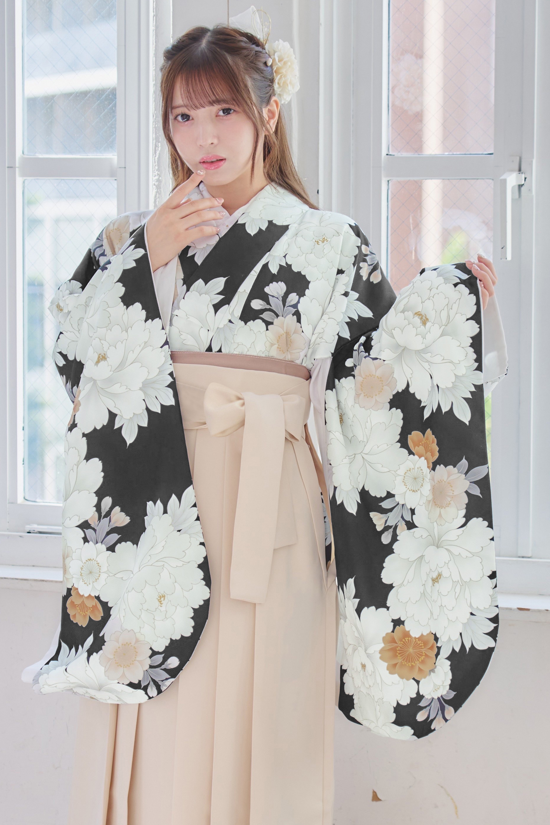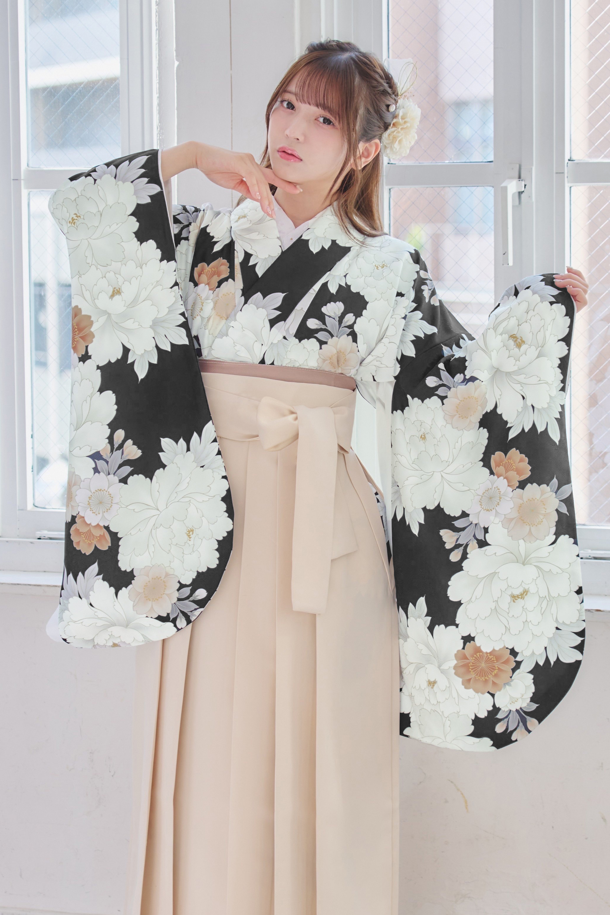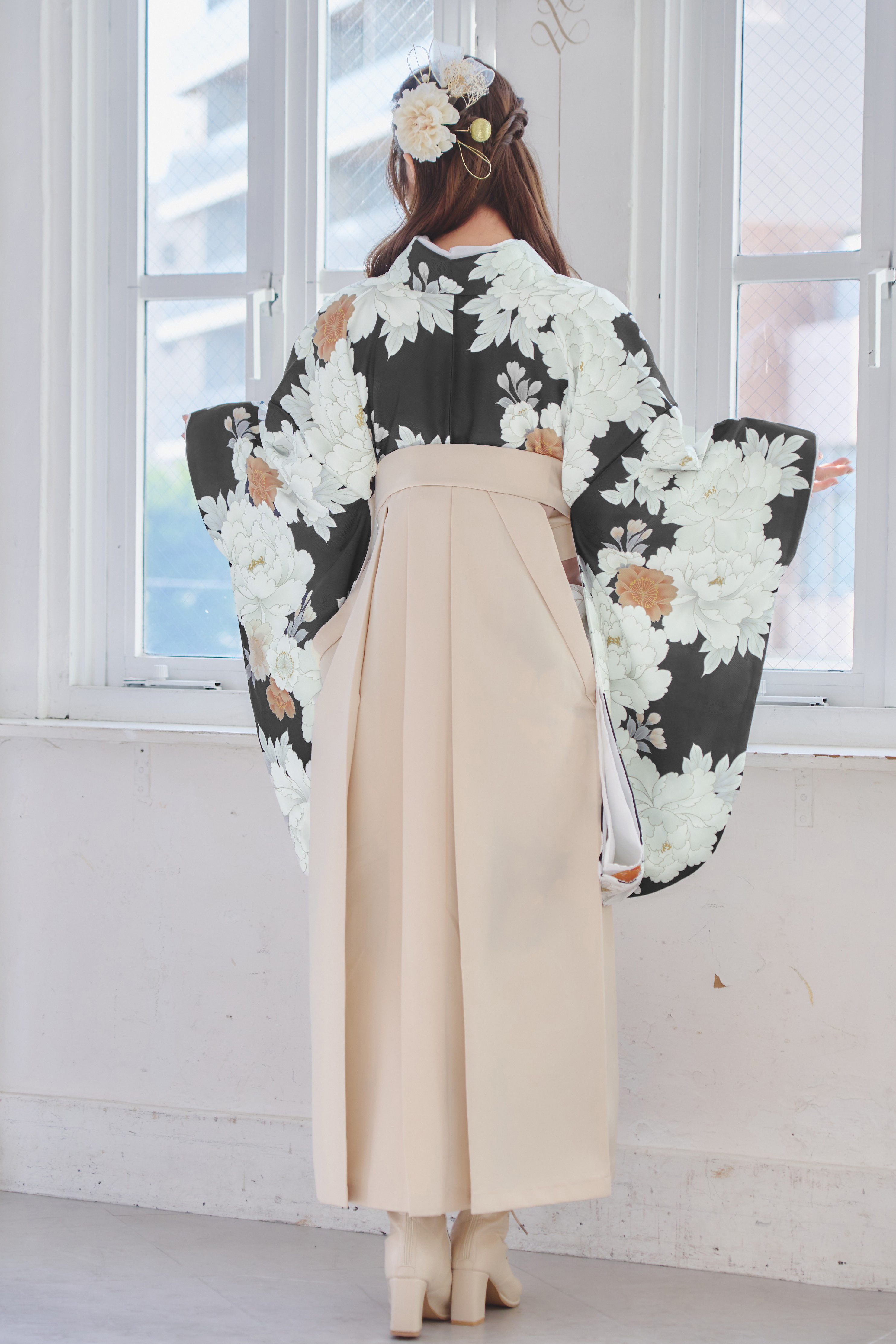 【袴4点set】華やかに咲く春のぼたん(ブラック)A8IV