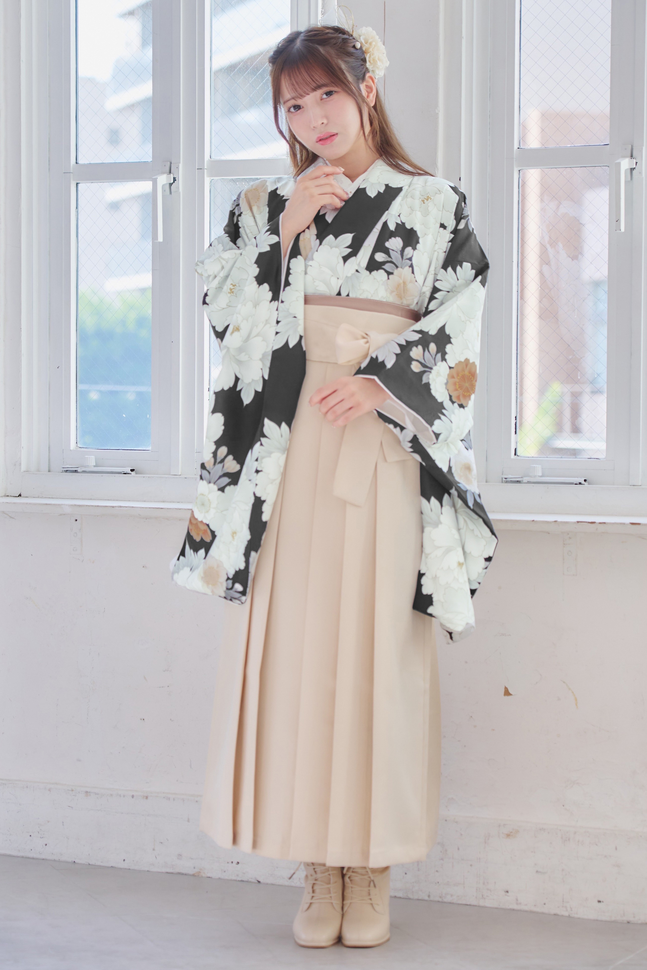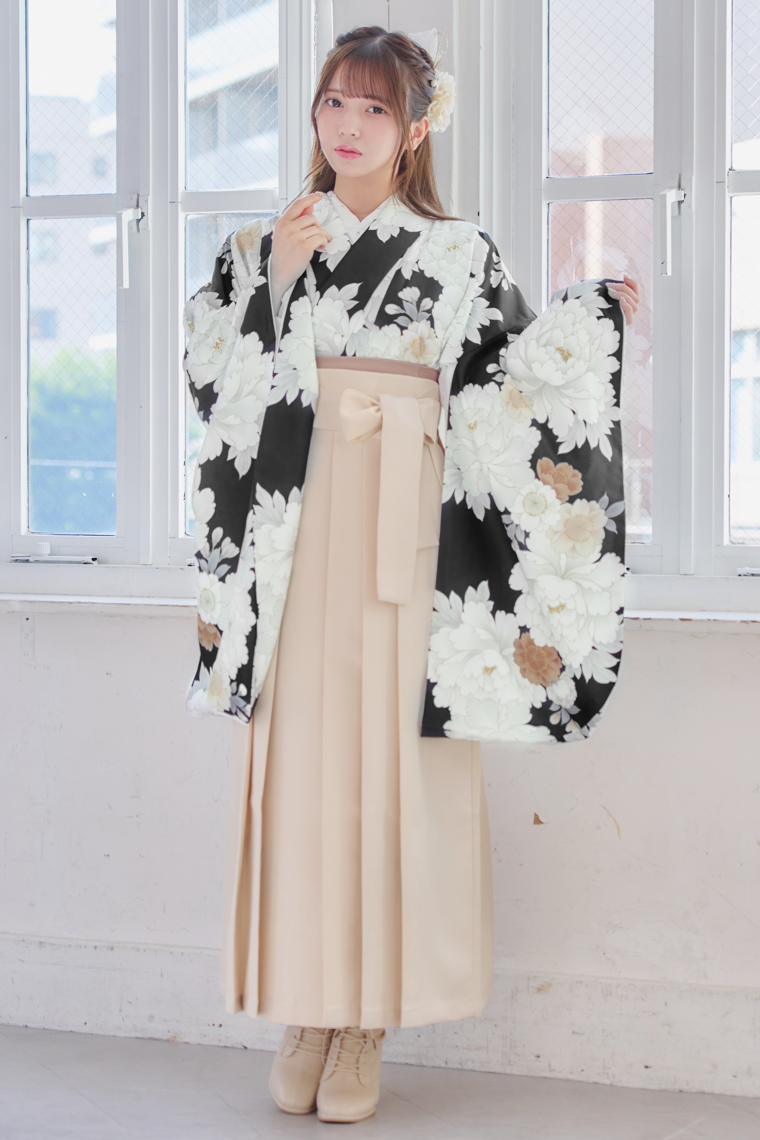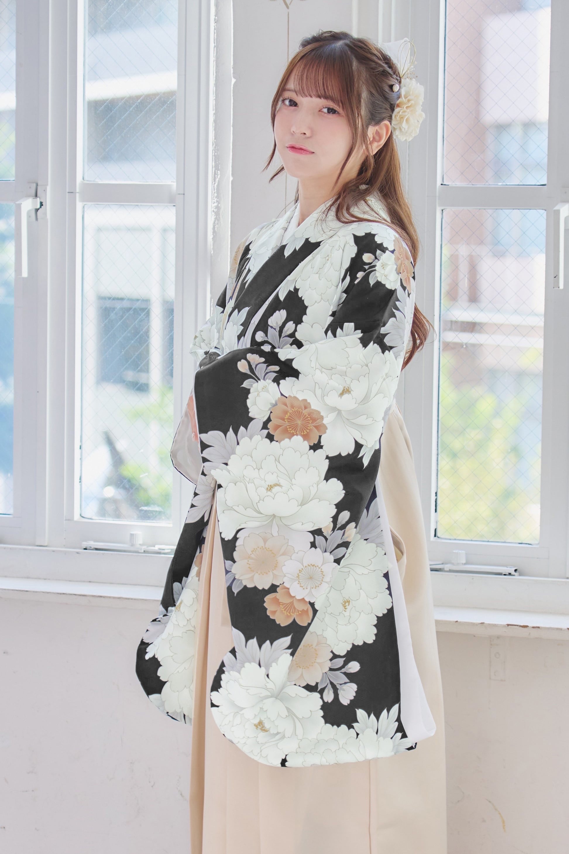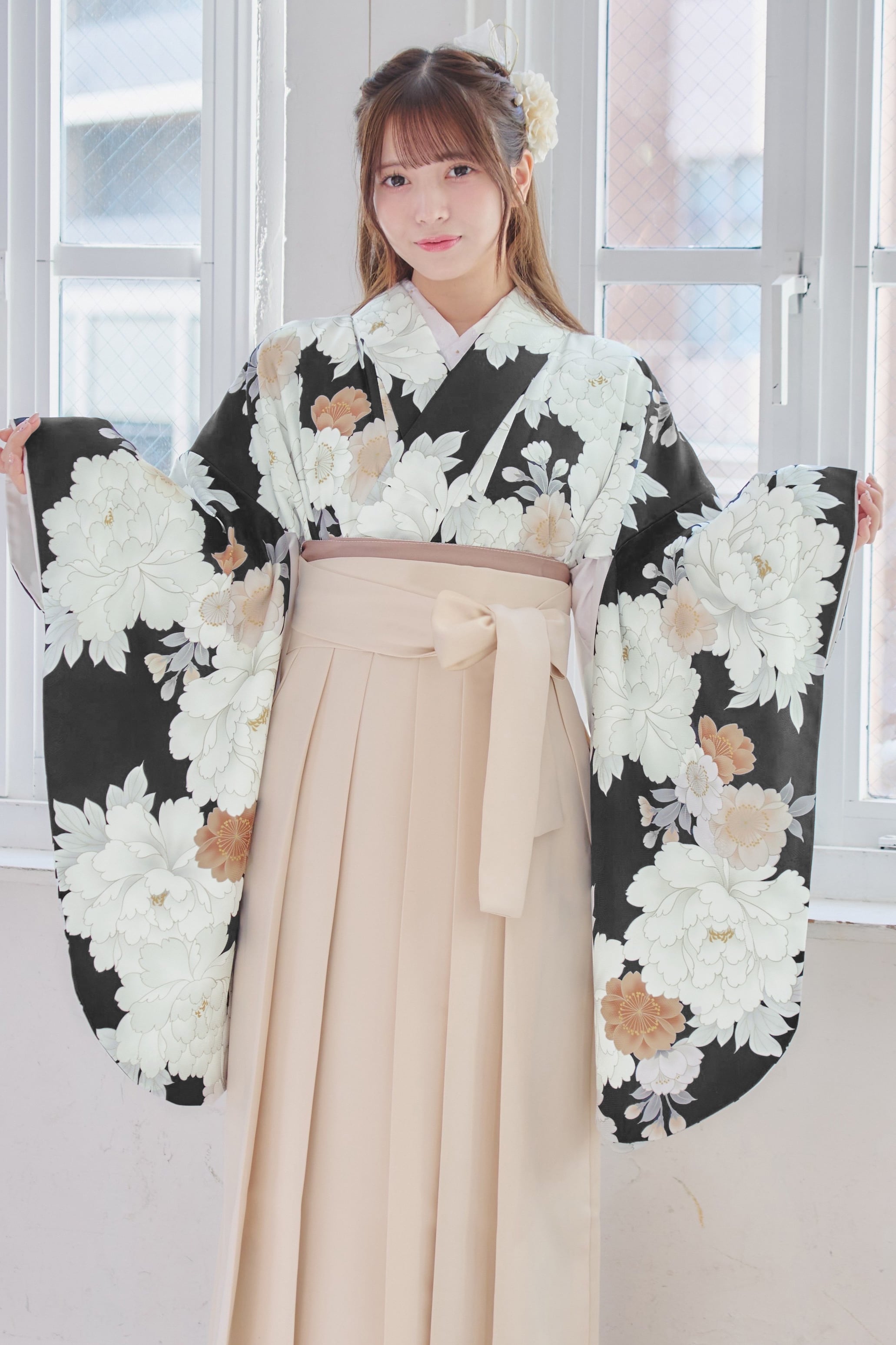 【袴4点set】華やかに咲く春のぼたん(ブラック)A8IV