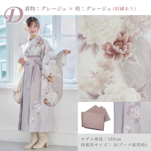【袴4点set】ふんわり浮世牡丹(グレージュ)刺繍袴94SGB