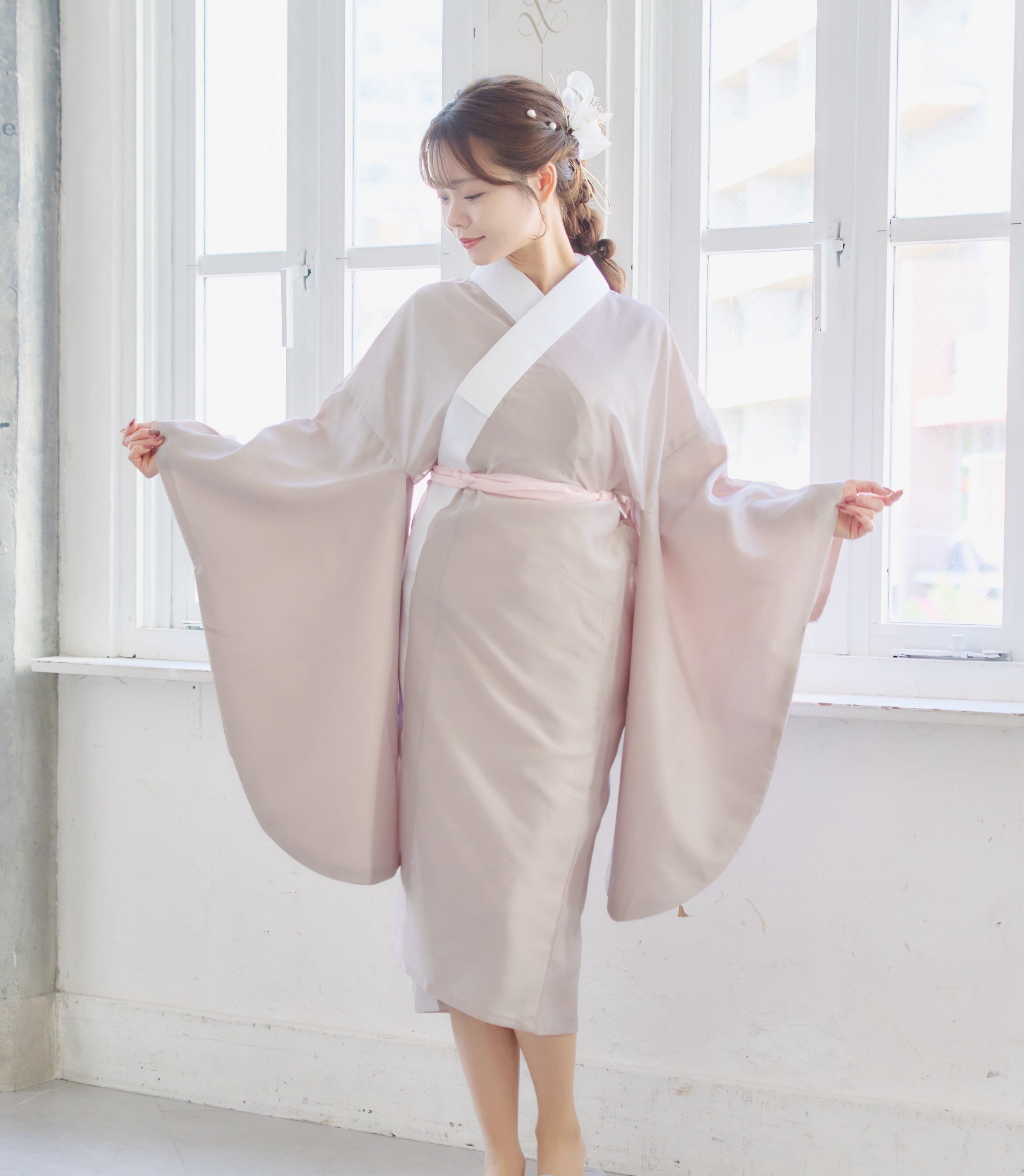 [色と柄]:ピンクパープル(白衿)/ベージュ(白衿)無地