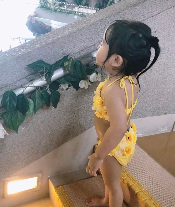 夏の象徴であるひまわりの水着で、元気いっぱいの可愛さです♪