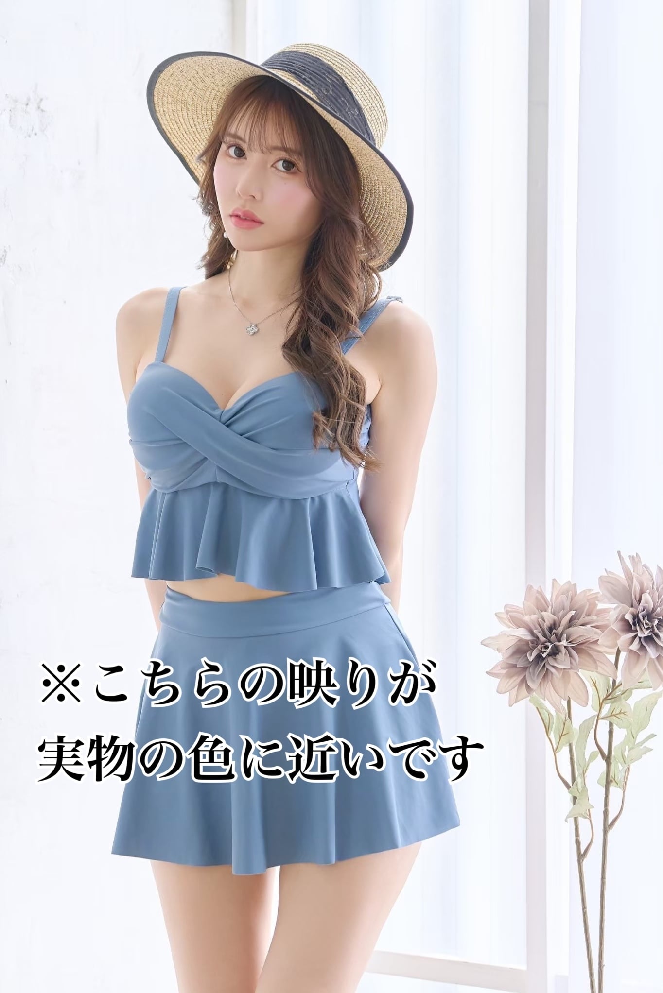 かわいくなりすぎない、くすみブルーが大人かわいいスカート水着♪