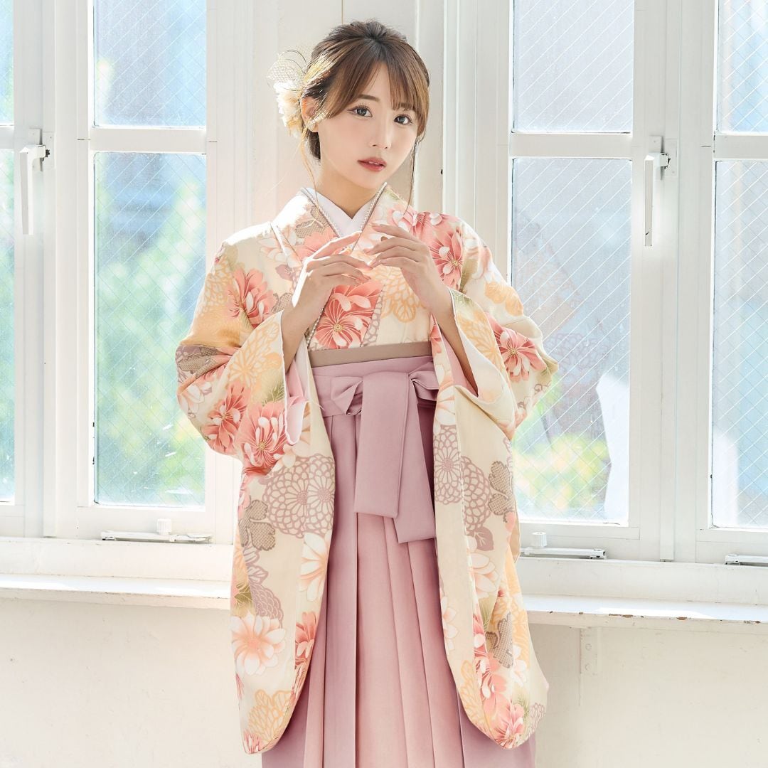 袴3点SET江戸の春祭り(クリーム地オレンジピンク)25-IV/MPK