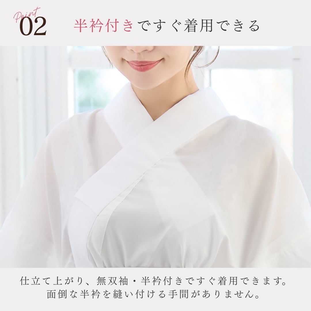 新品仕立て上がり、無双袖・半衿付きですぐ着用できます。