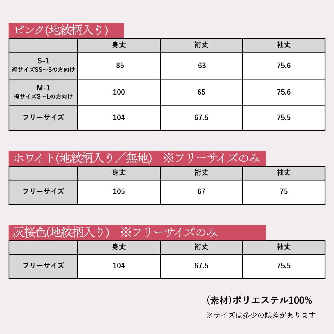 フリーサイズ(ホワイト):身丈約105cm 袖丈約75.6cm 裄丈約67cm