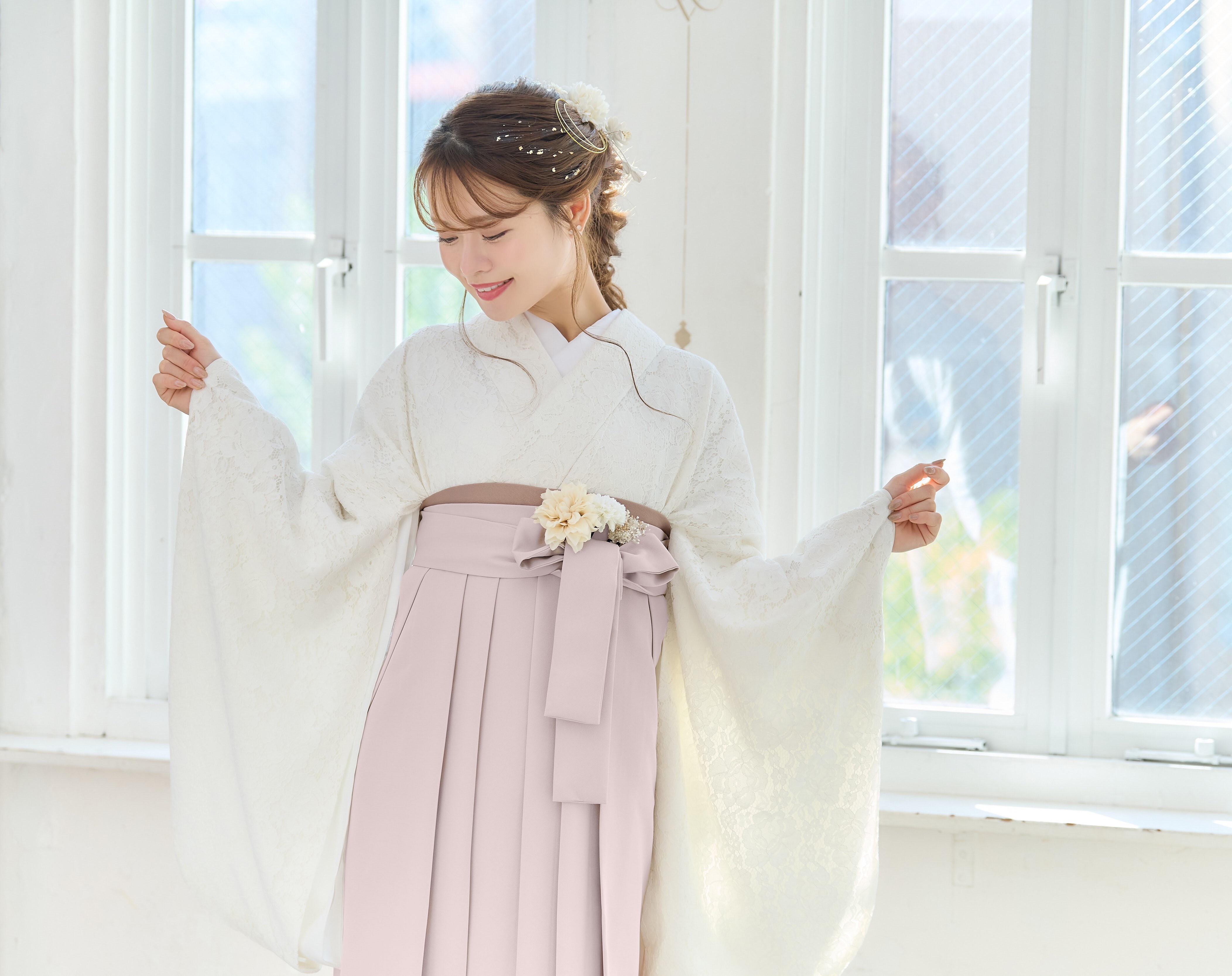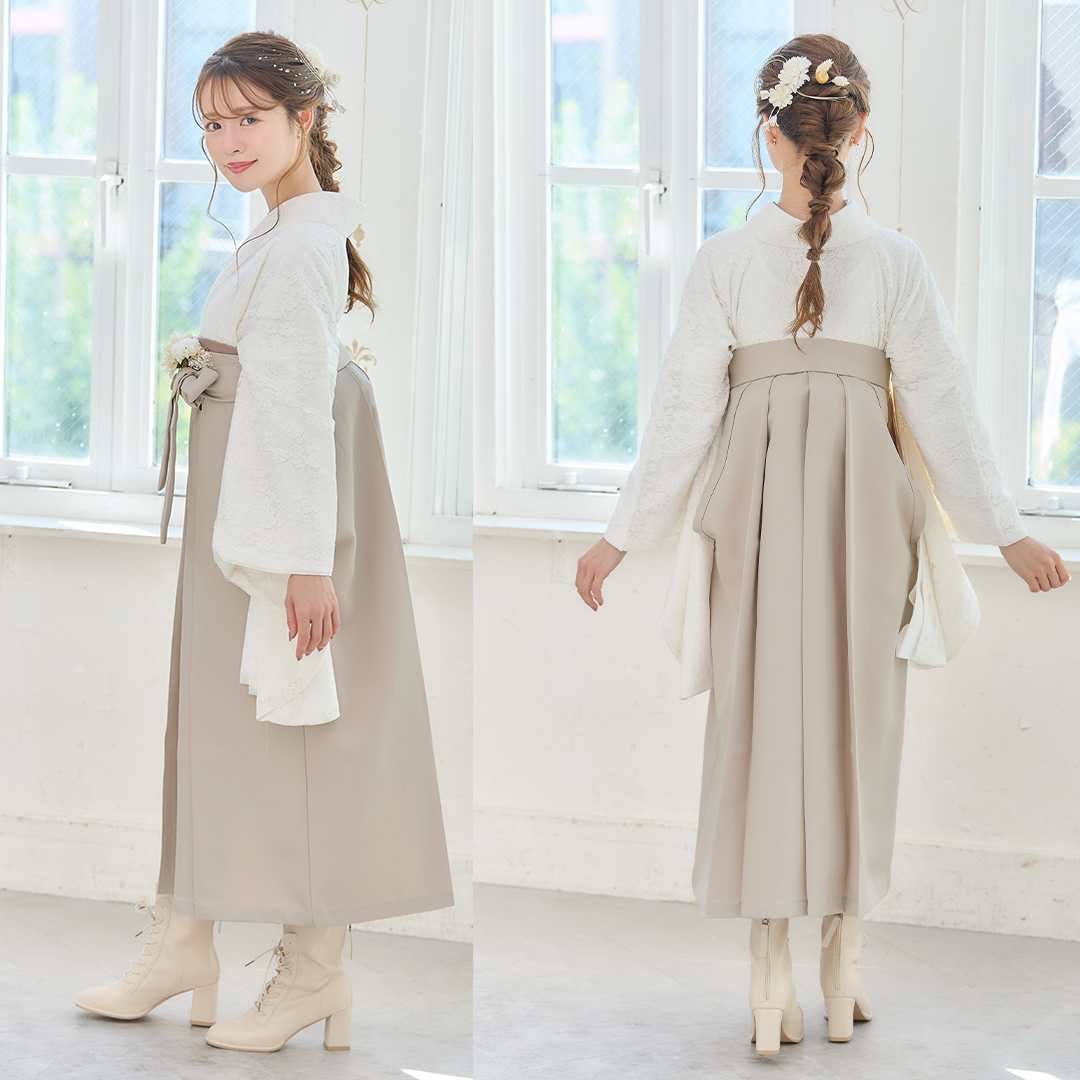 袴は、中仕切りがない行灯袴ですので、洋服のスカートと同じようにお召しいただけます。ご自宅でもお手入れしやすいので、着用も安心です。着崩れ防止の、便利なヘラ付きです。