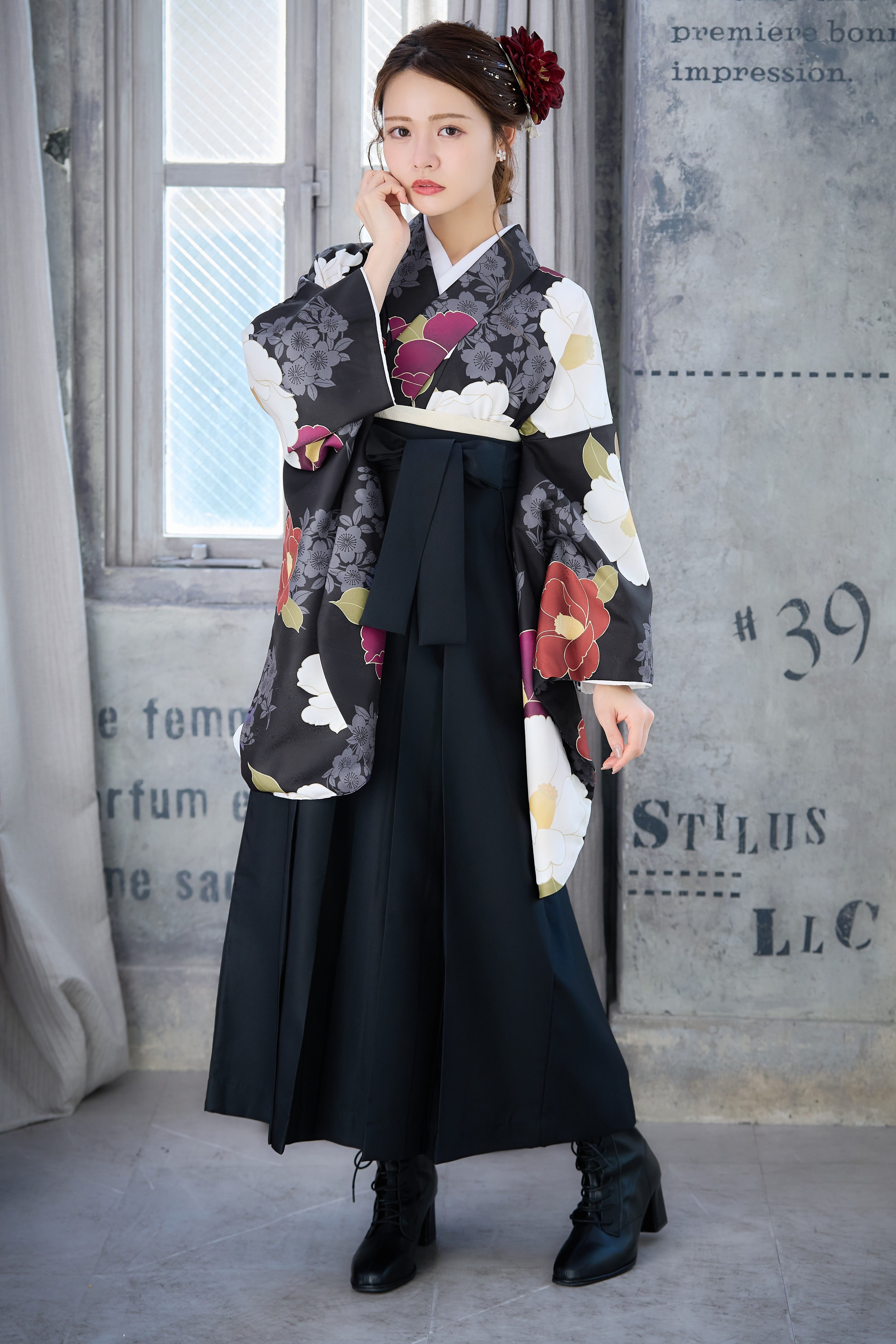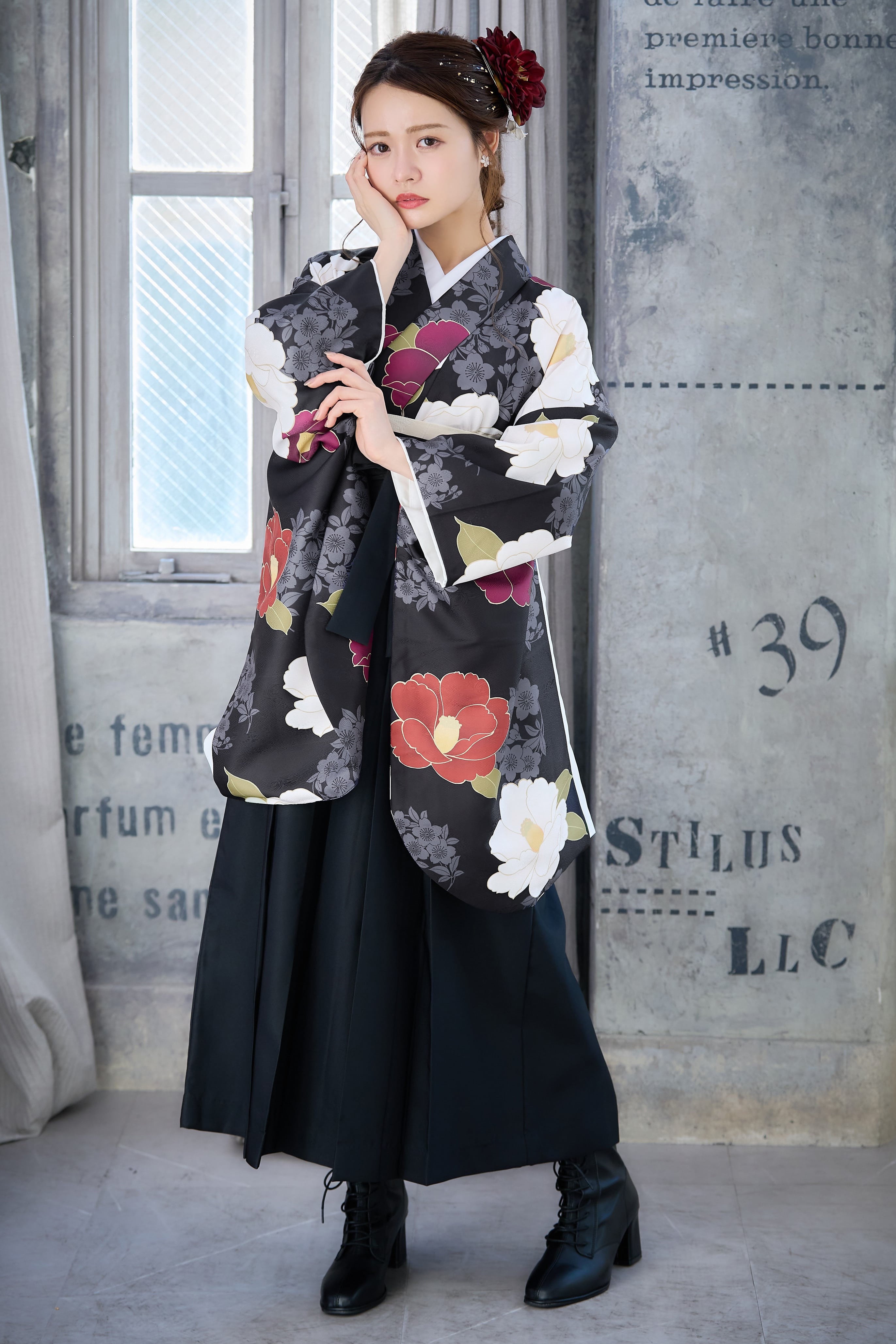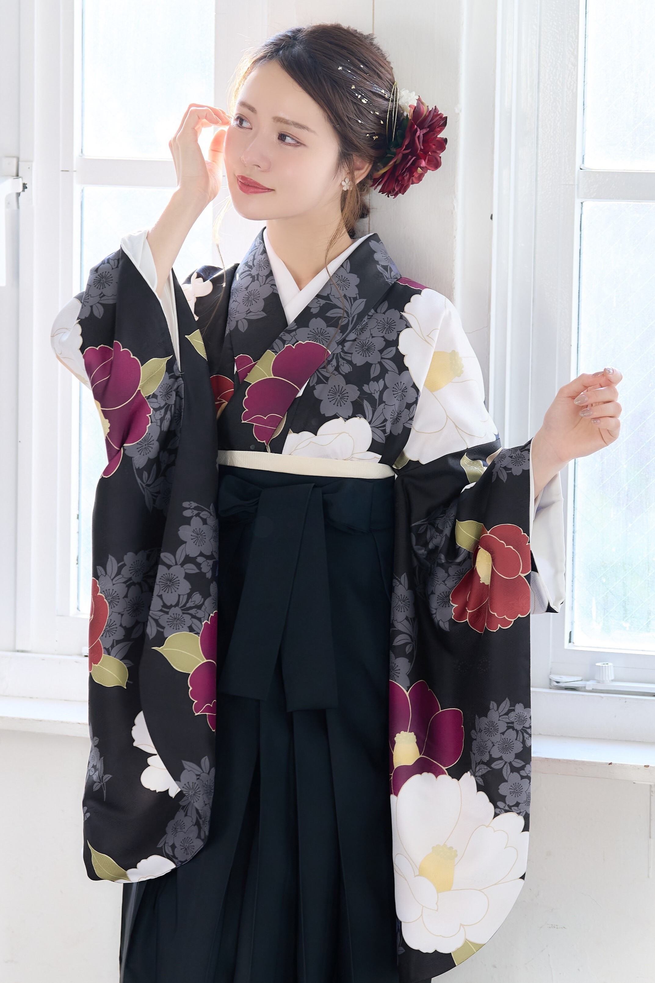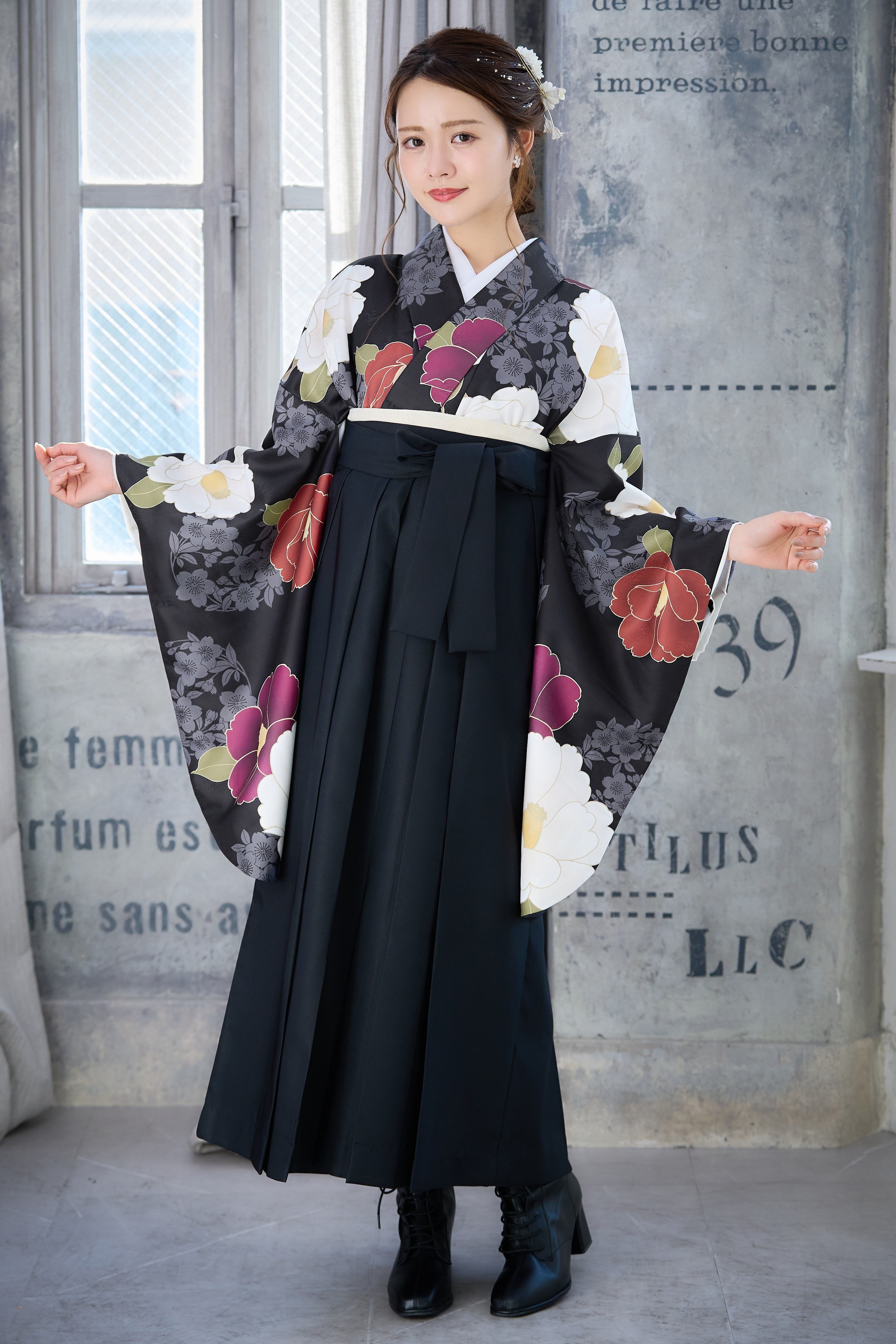 袴4点SET3色重ね椿(ブラック)㉘BK