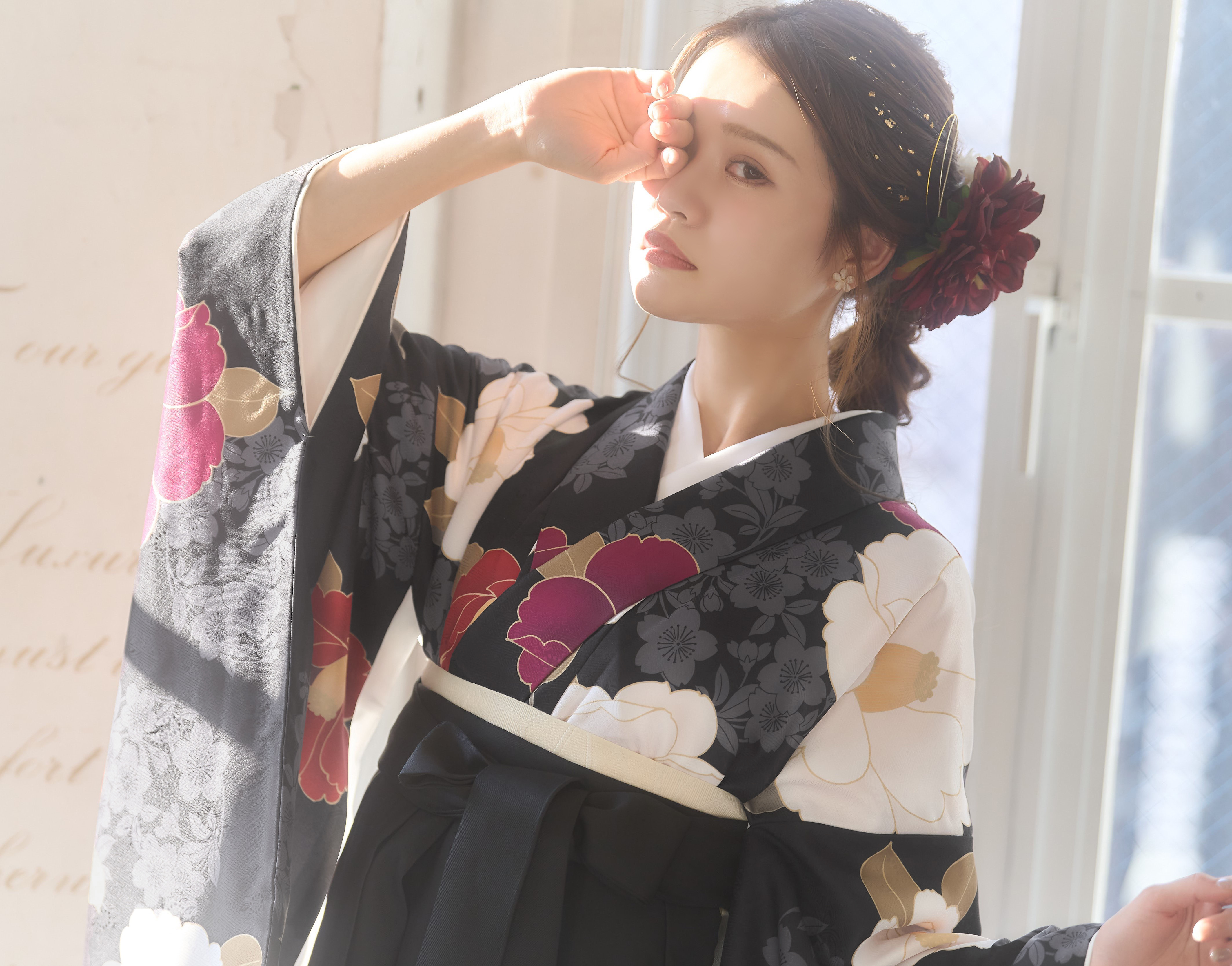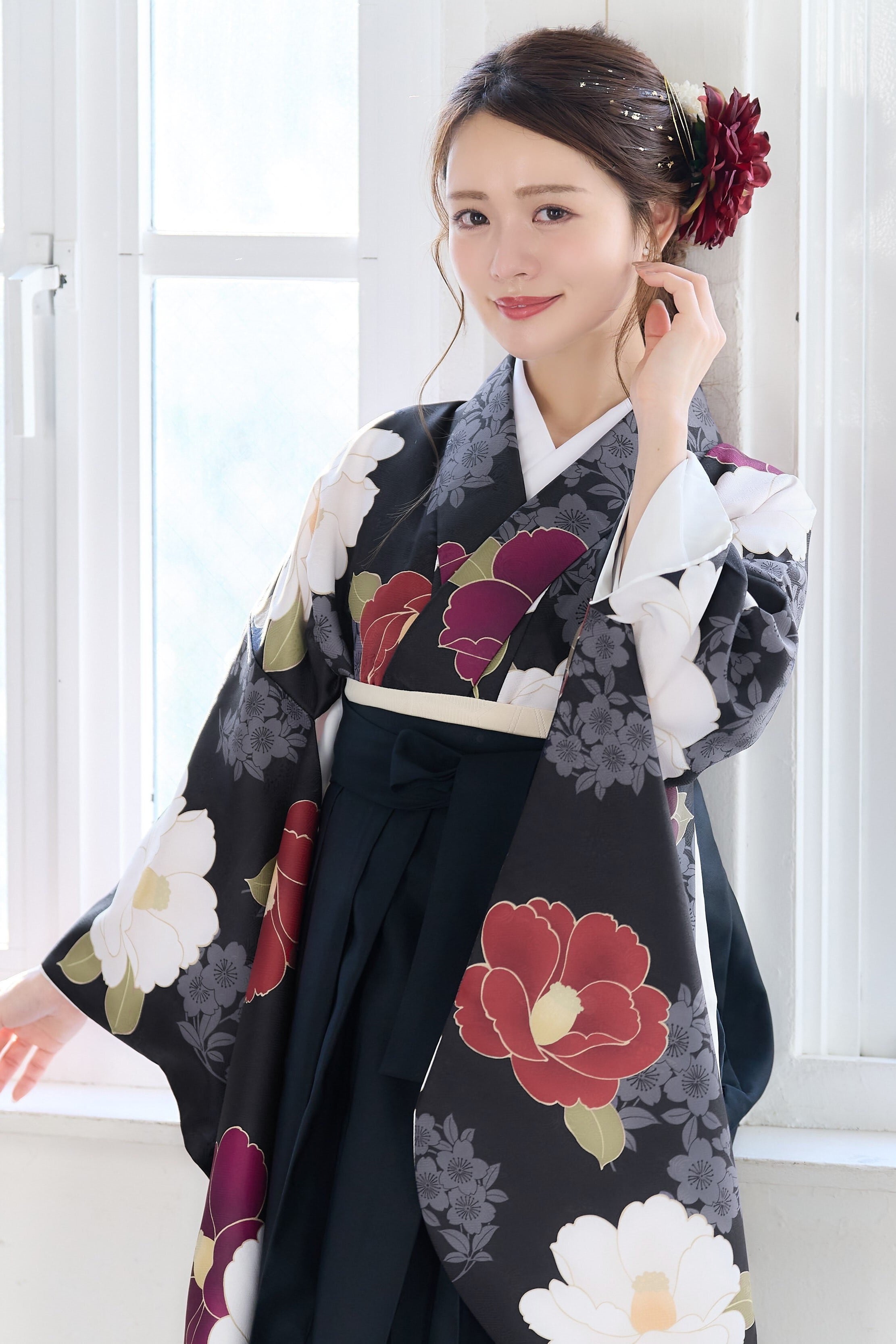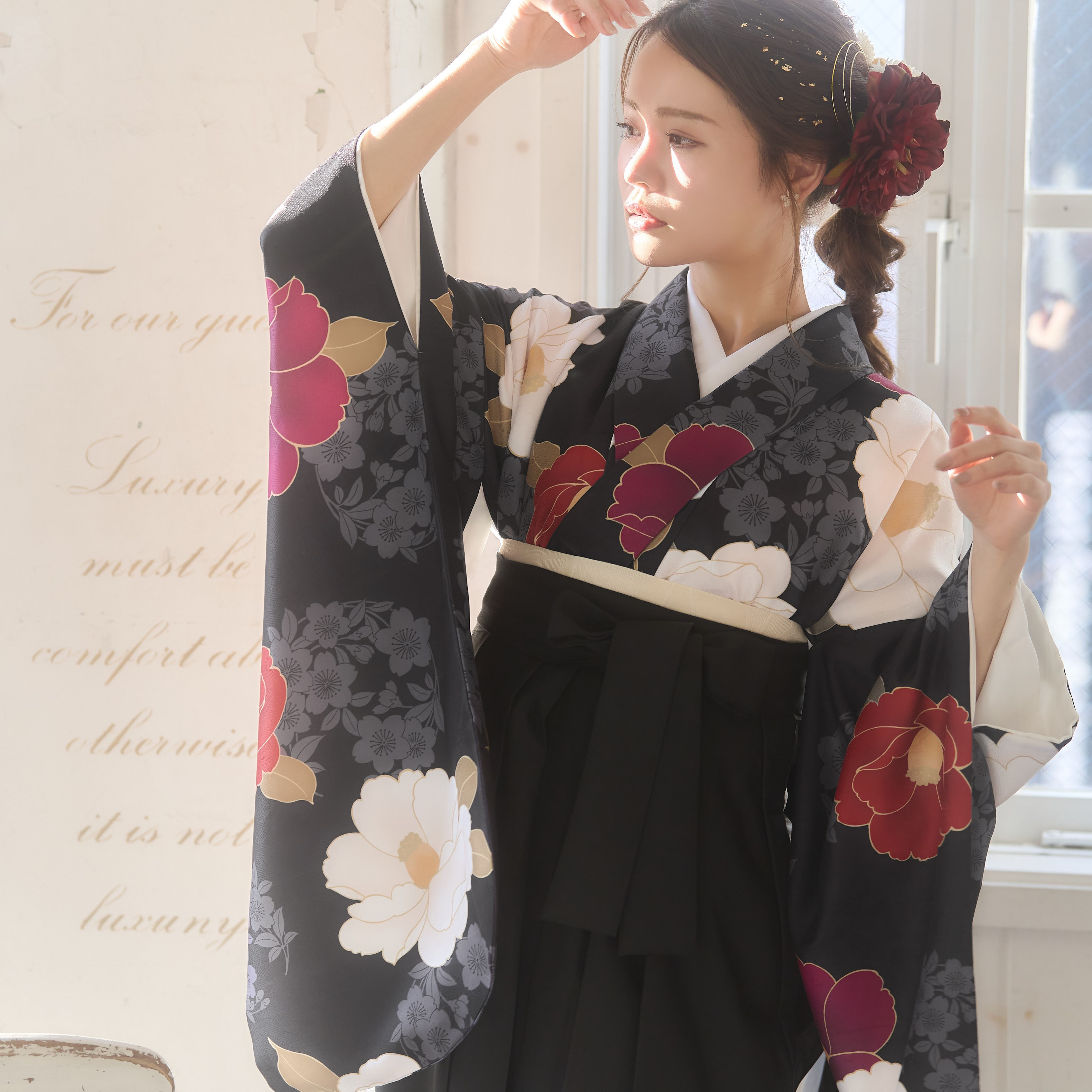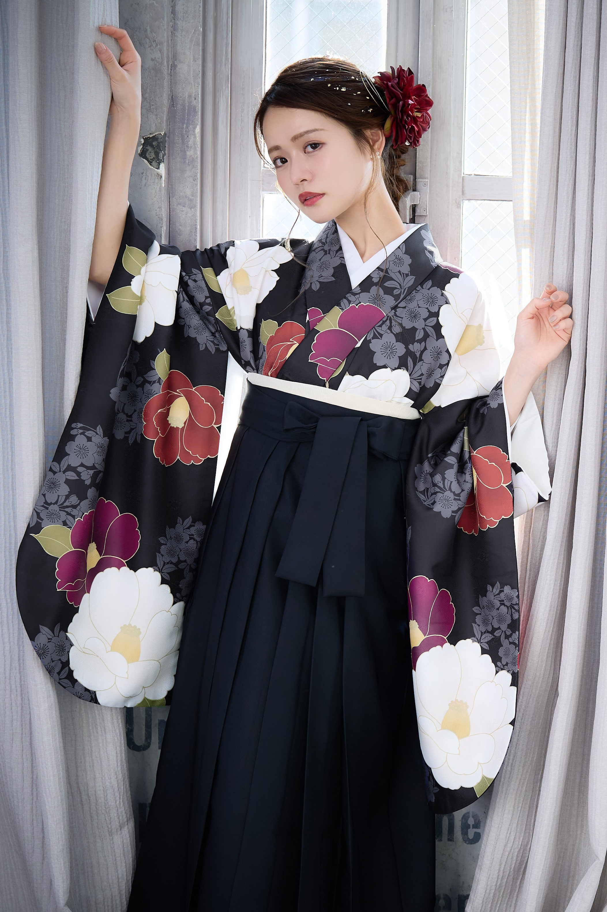 袴4点SET3色重ね椿(ブラック)㉘BK