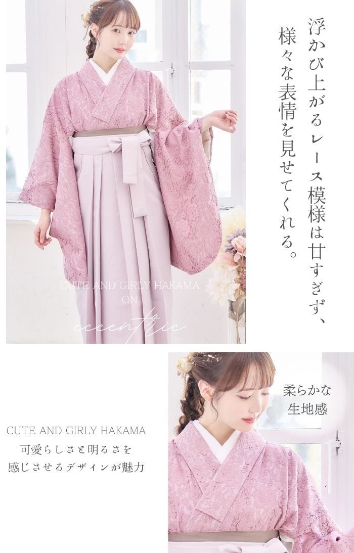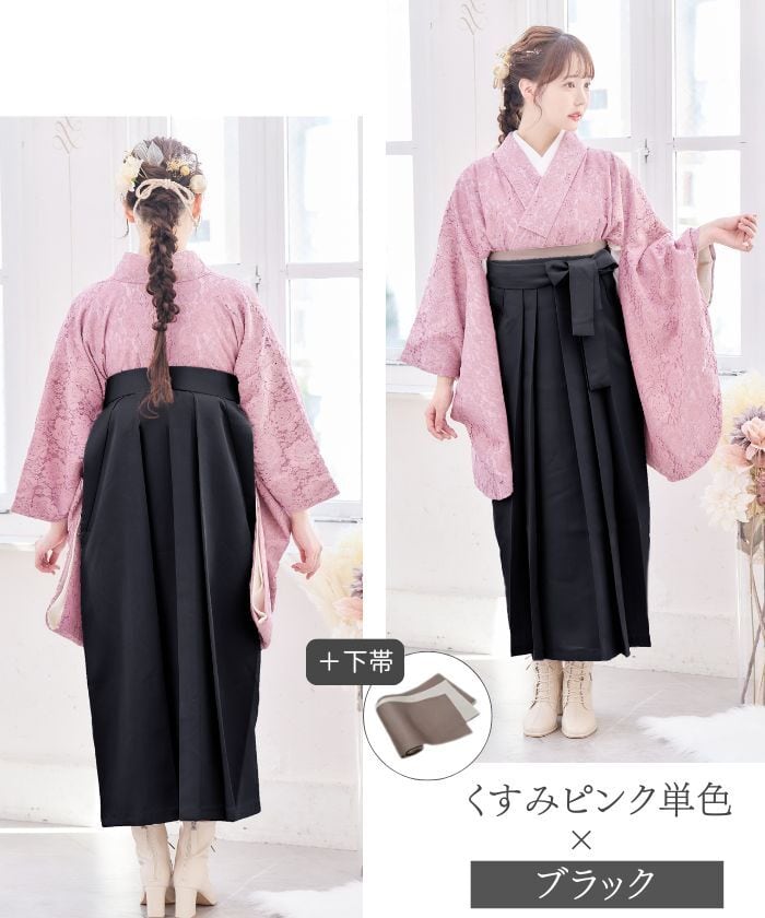 【袴3点set】はんなりレース重ね(くすみピンク単色)57LPK/BK