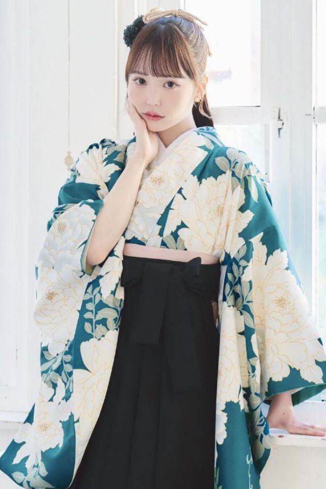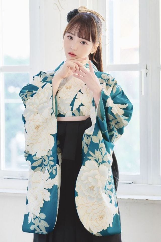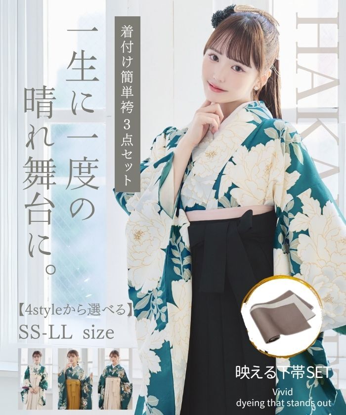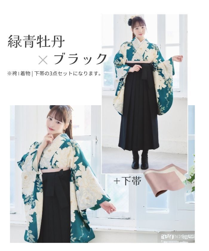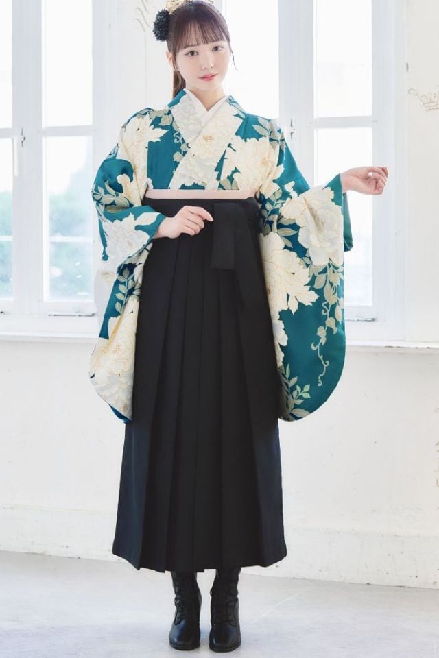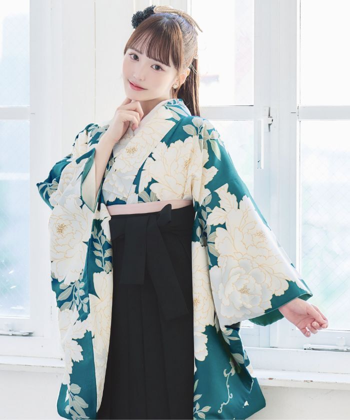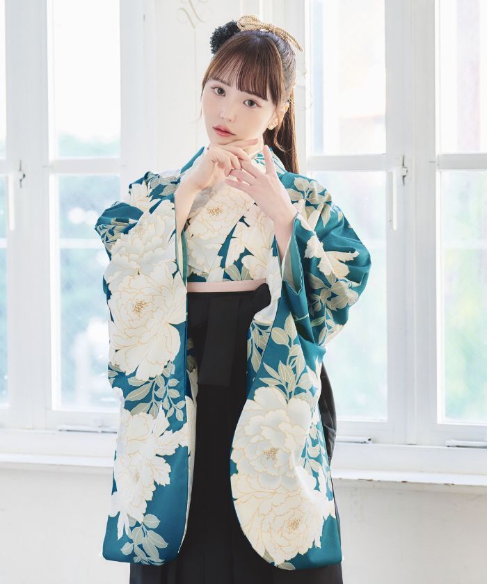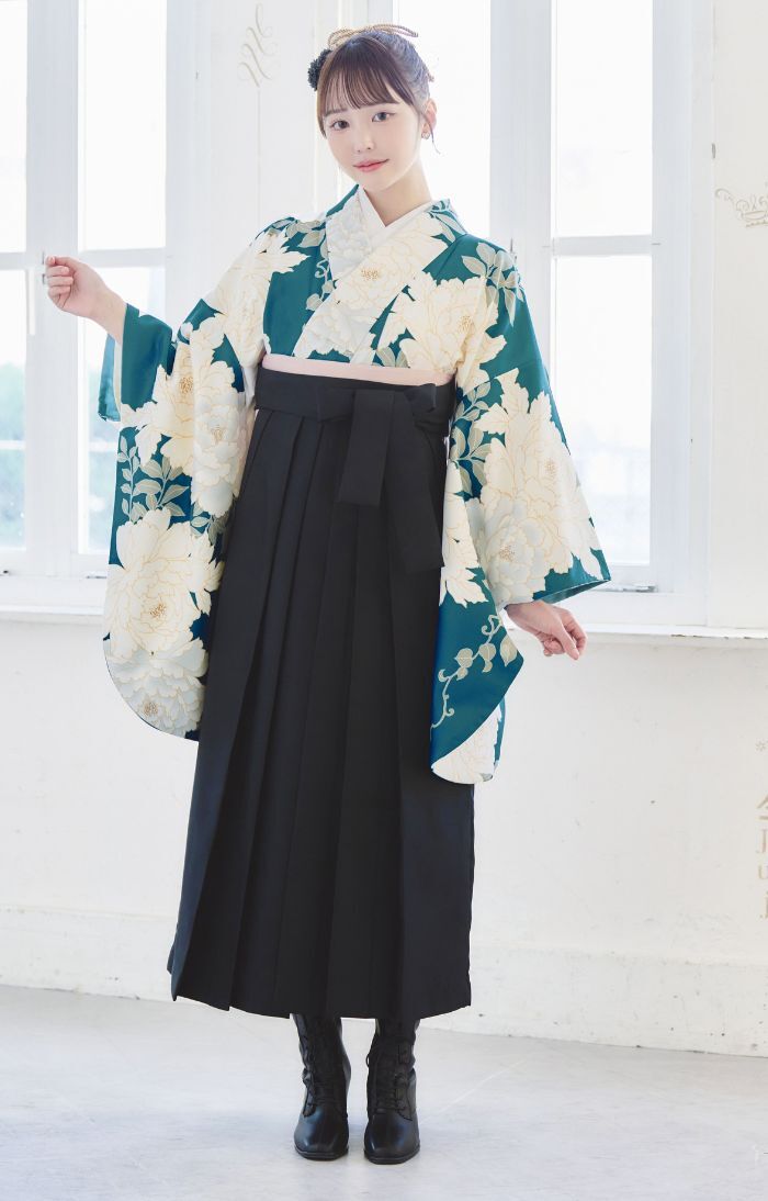 【袴4点set】春のぼたん古典ロマン(ブルーグリーン)65BK