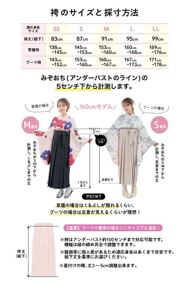 袴(草履着用時)M 袴(ブーツ着用時)S