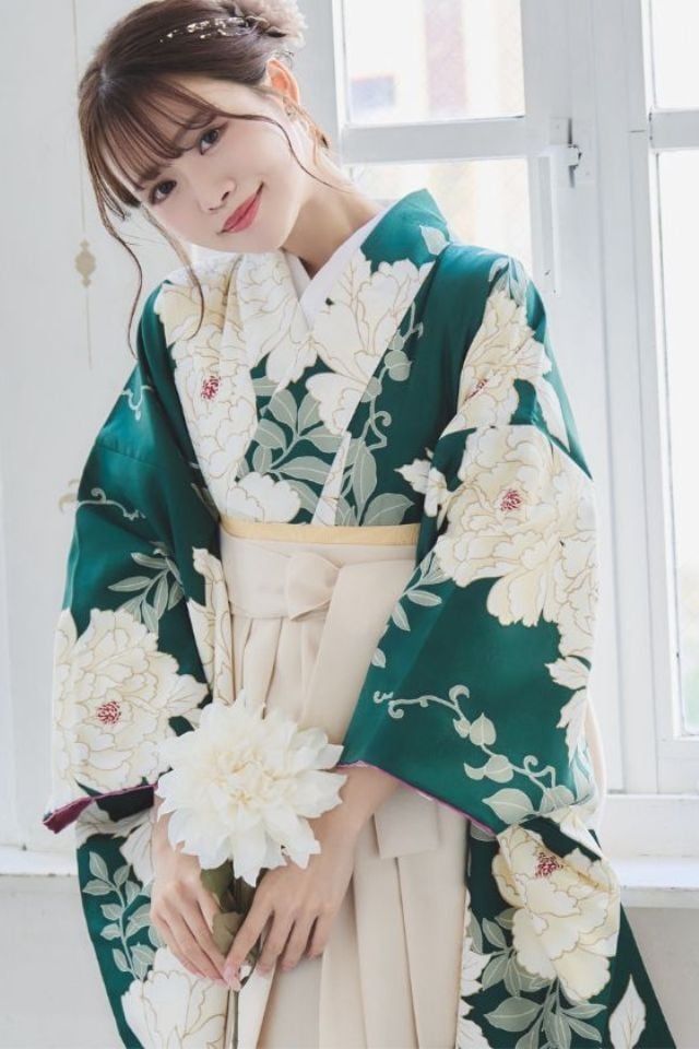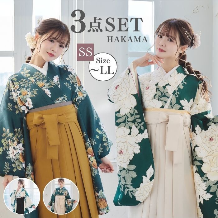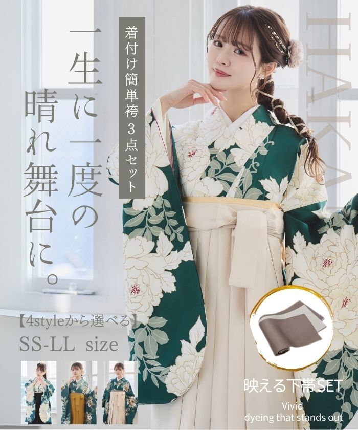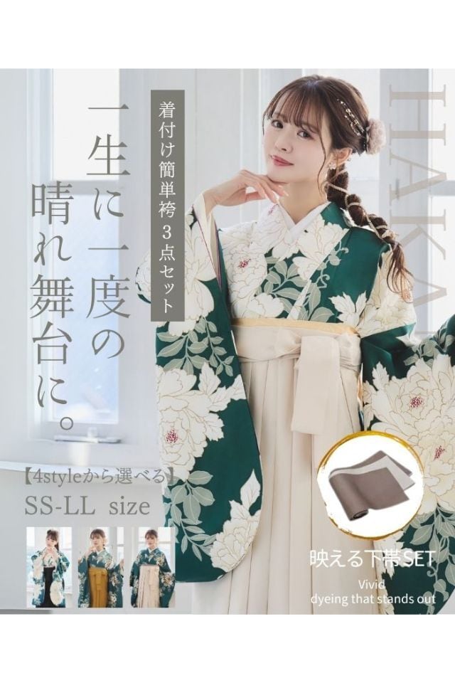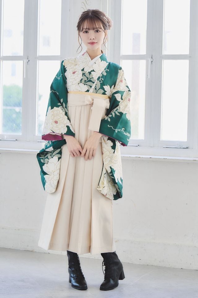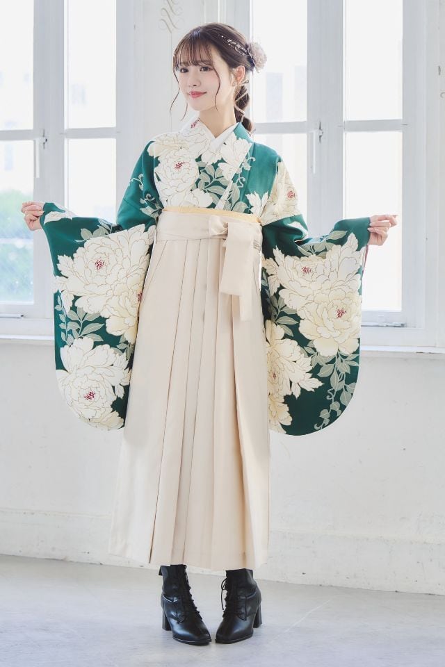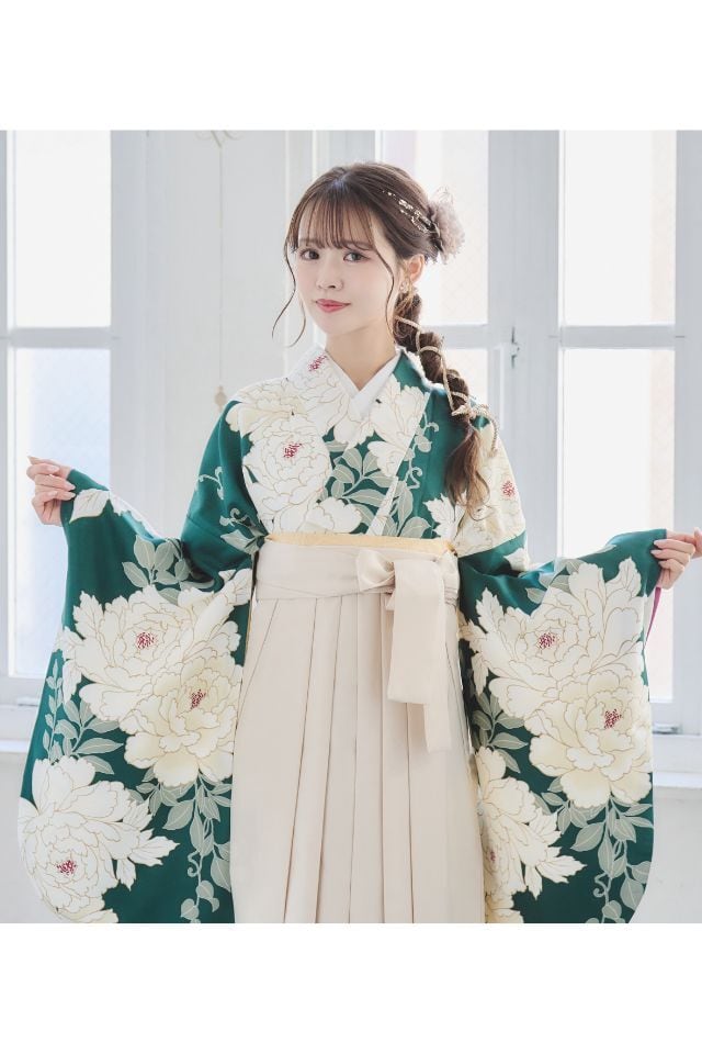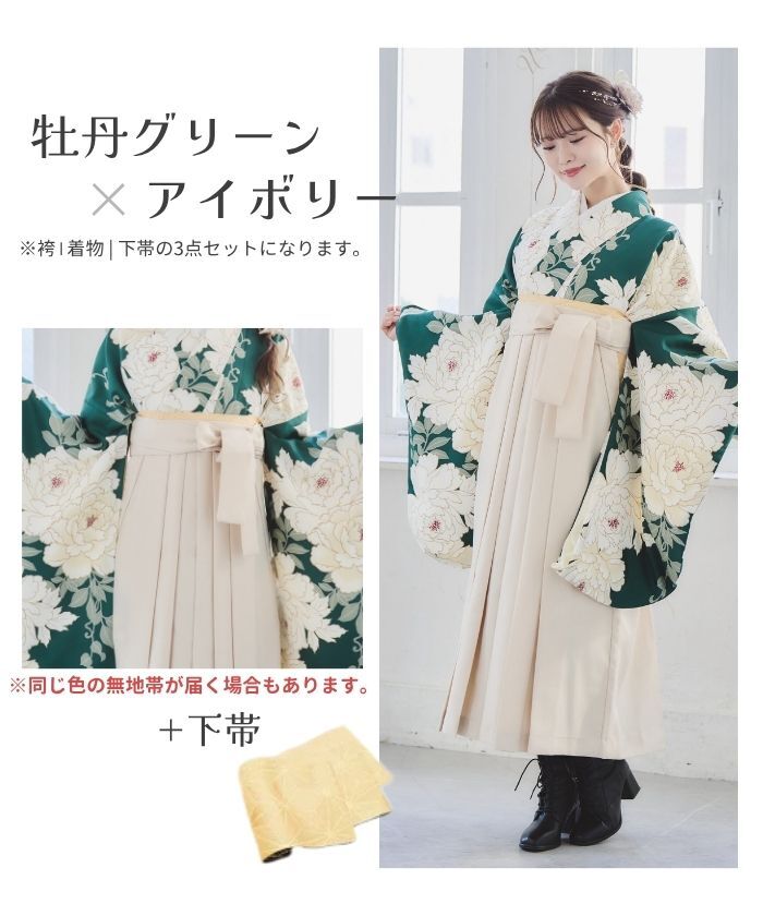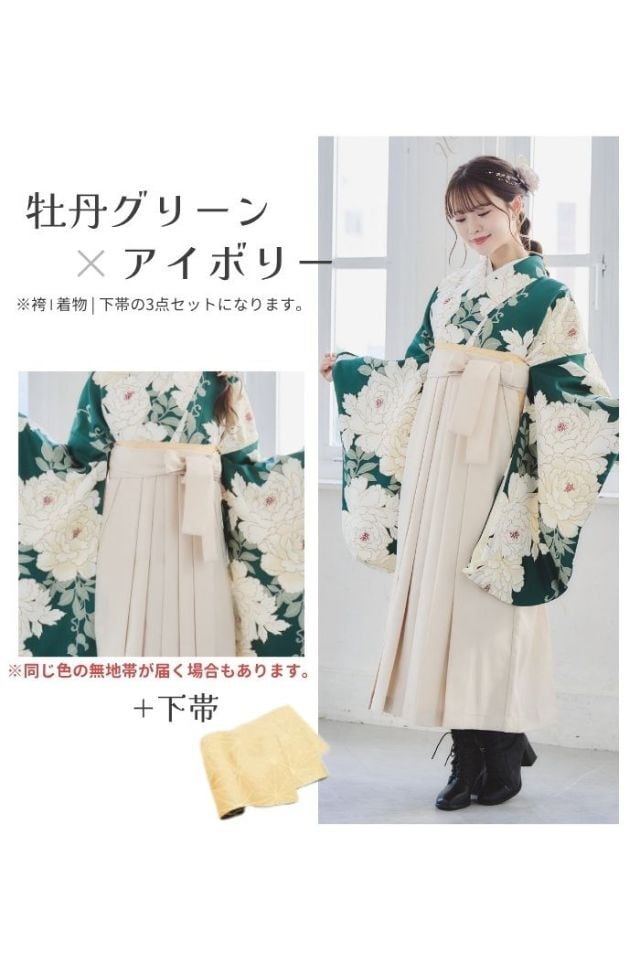 【袴4点set】春のぼたん古典ロマン(緑地)64IV