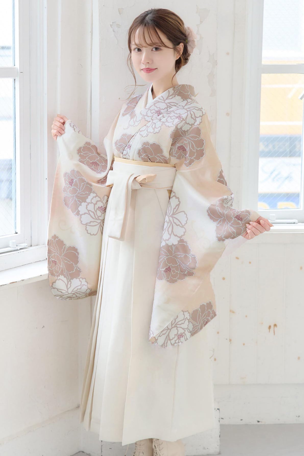 袴4点set麗らかな淡ぼたん(オレンジクリーム)67WH(刺繍無し)