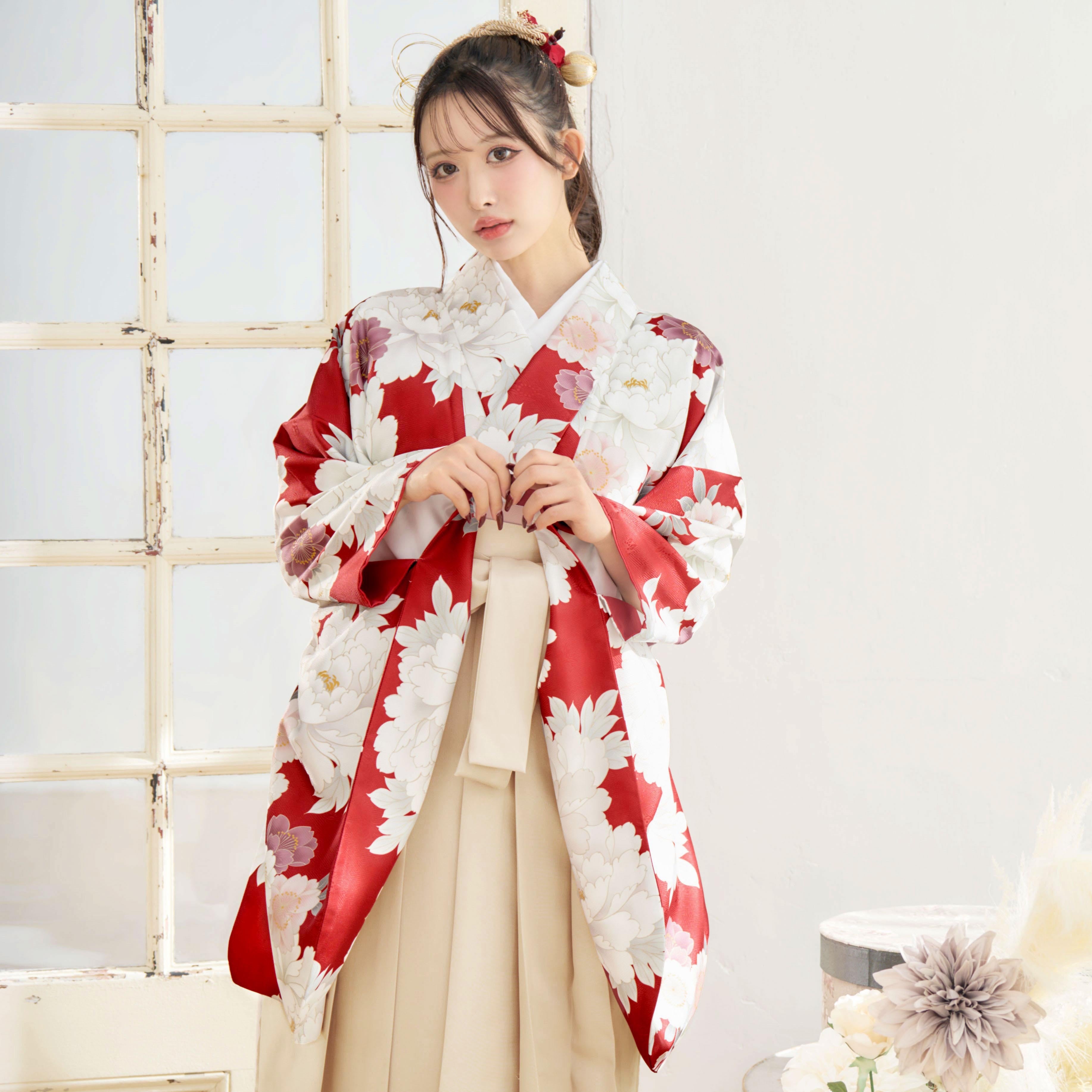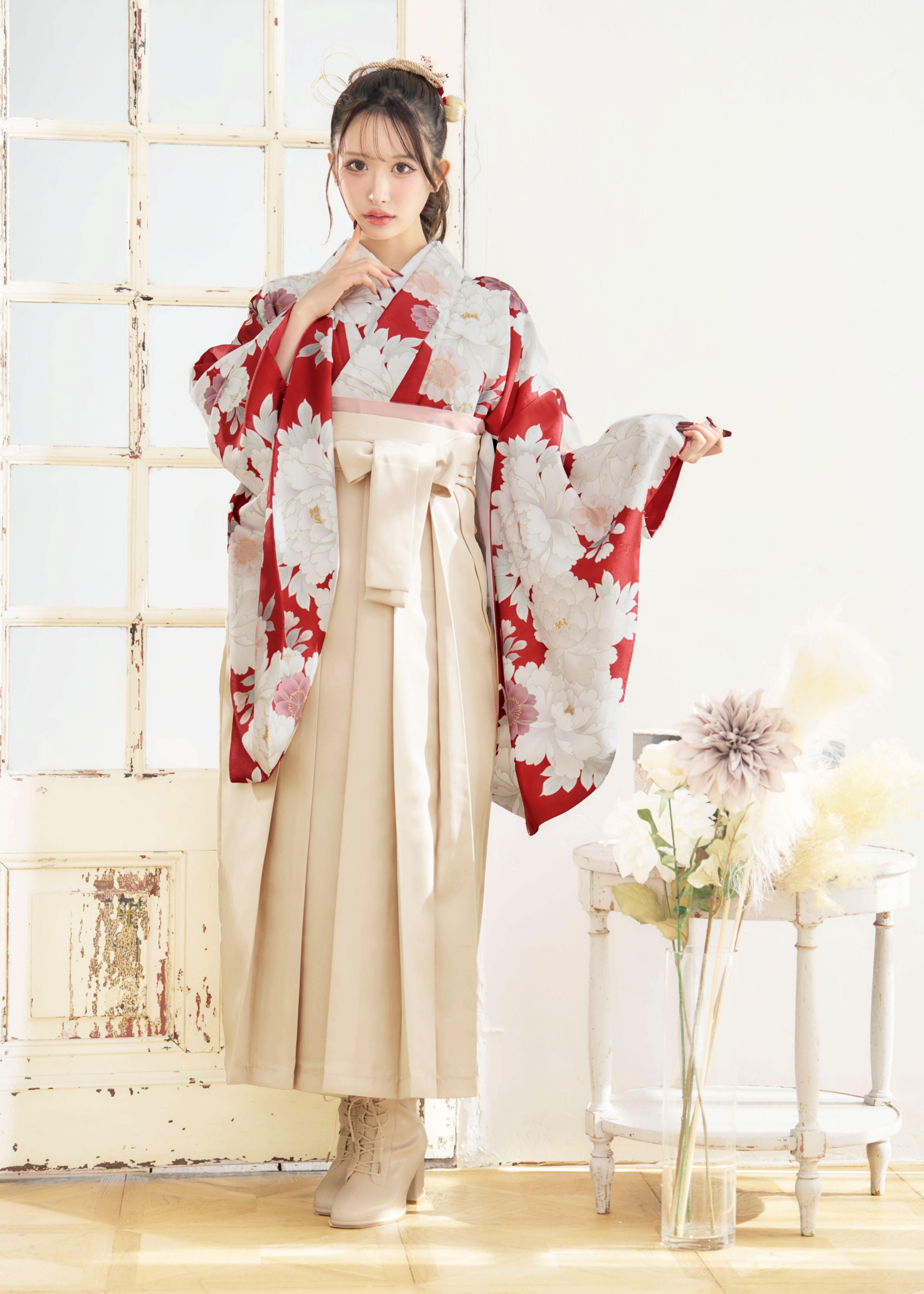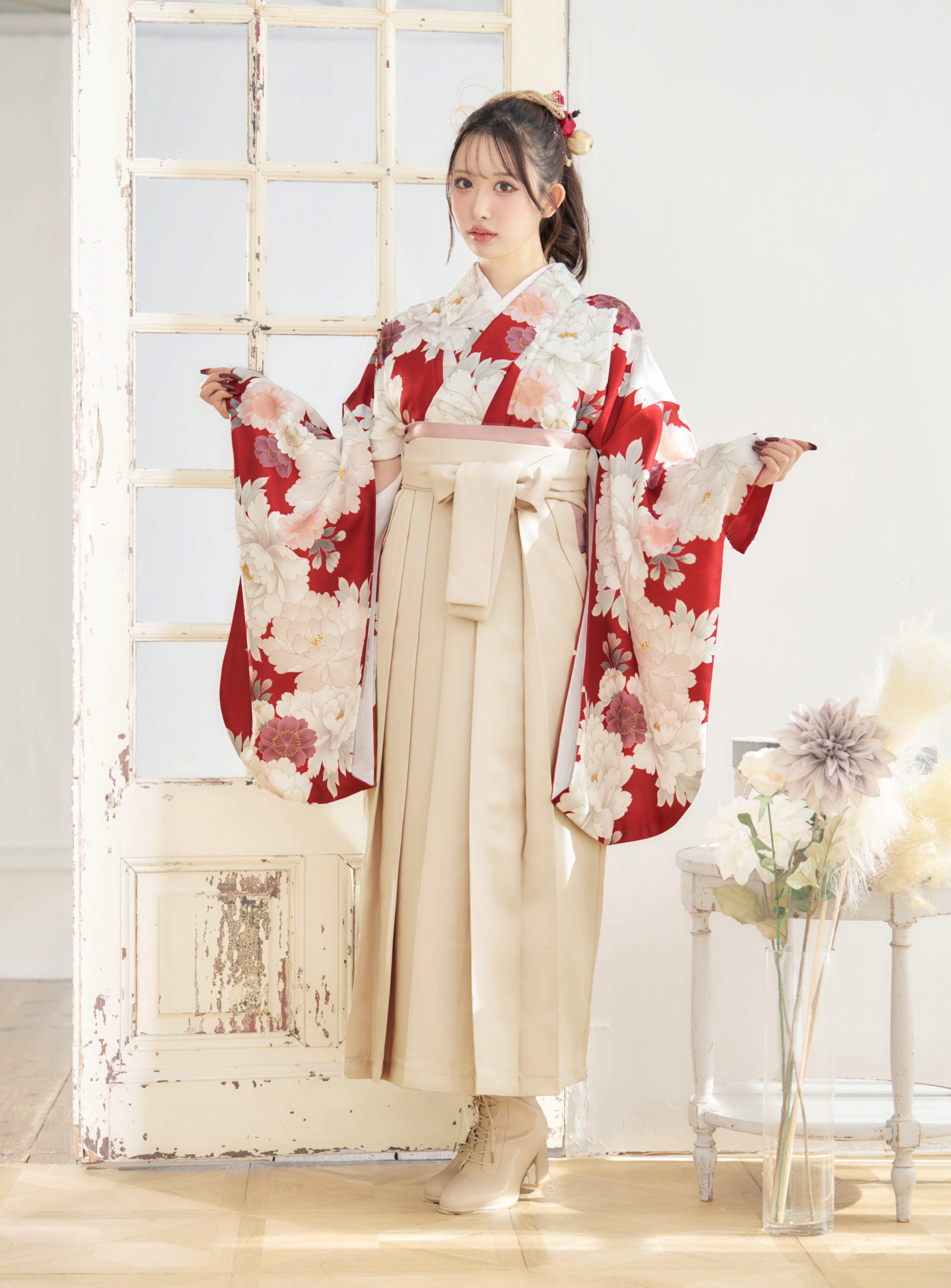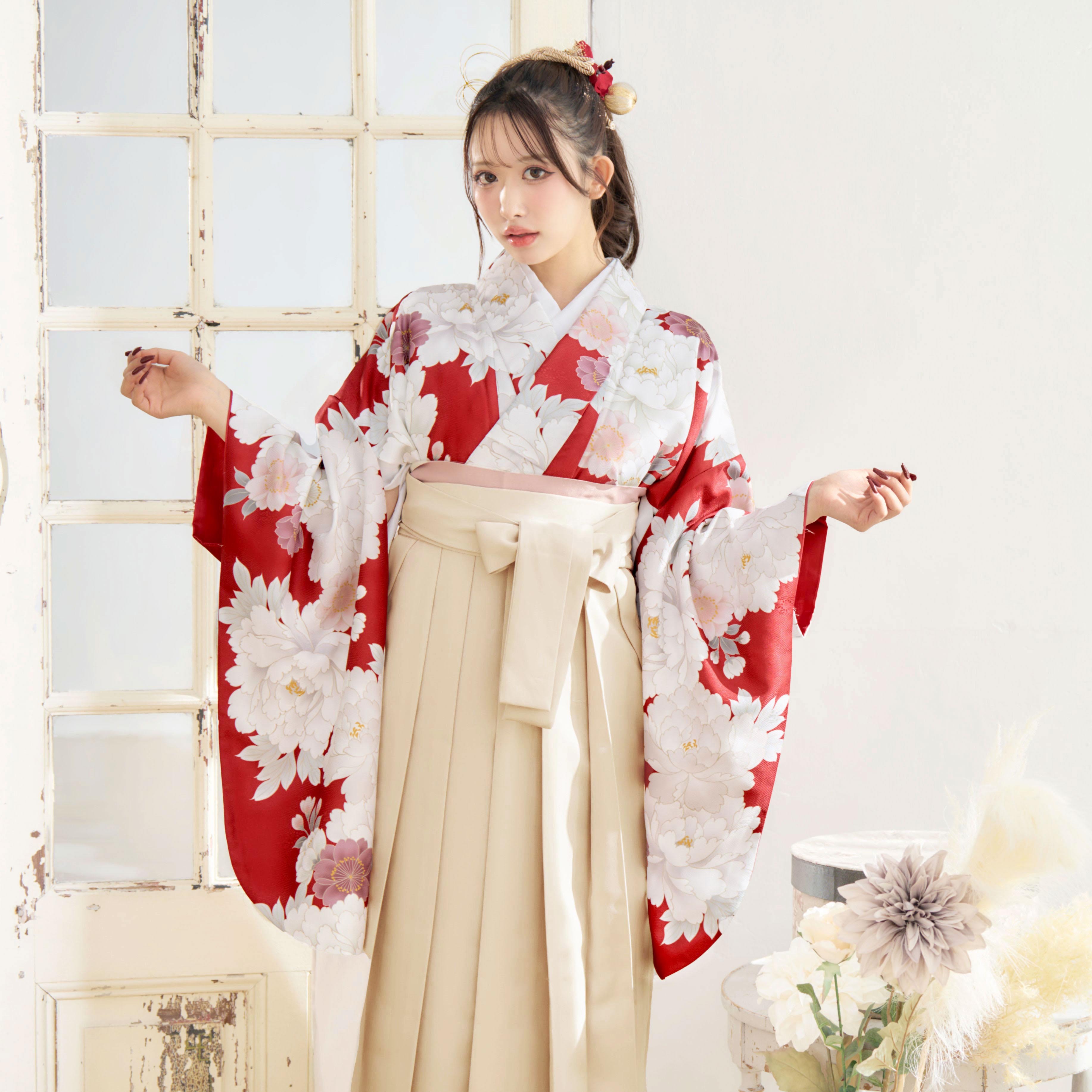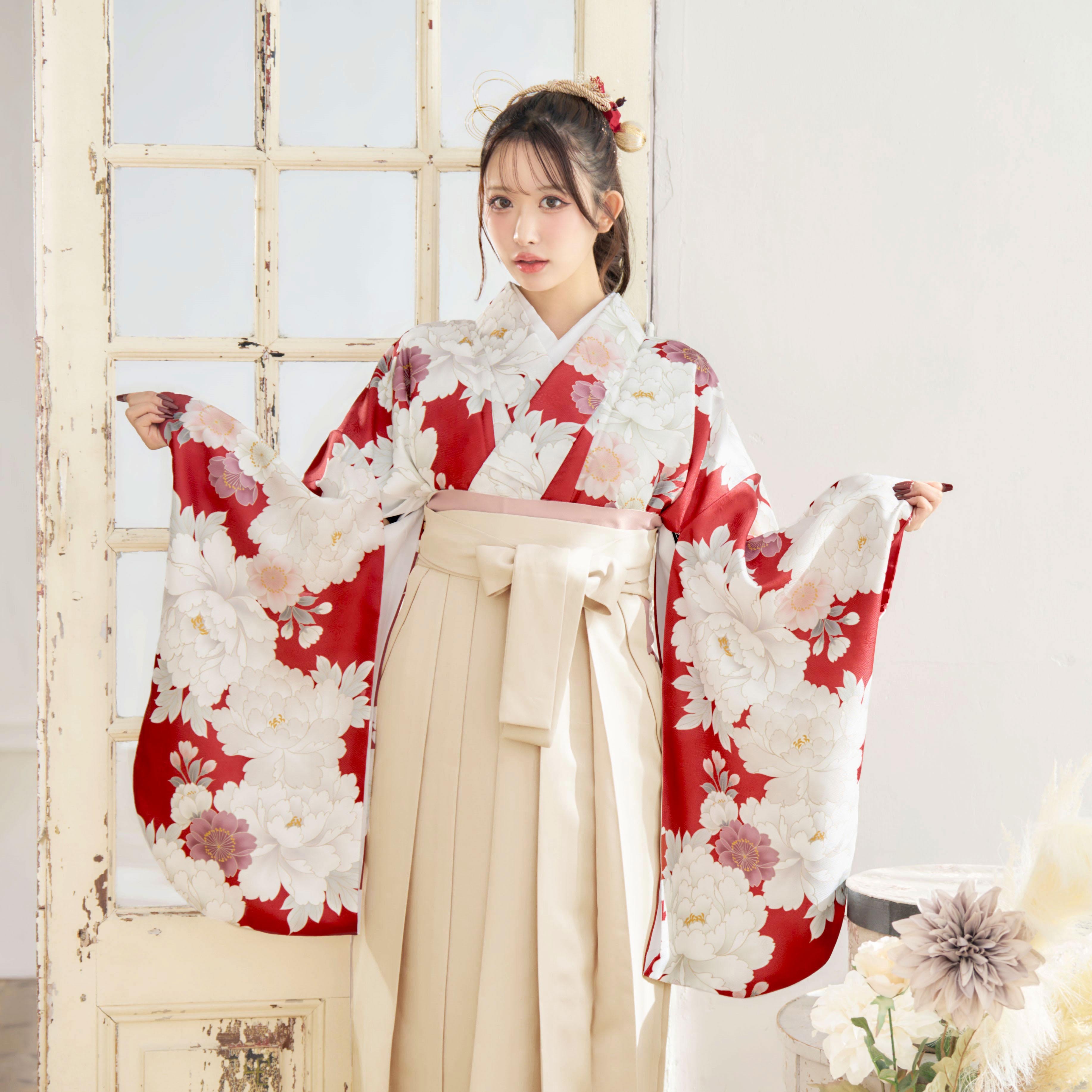 【袴4点set】華やかに咲く春のぼたん(赤)86BK/IV